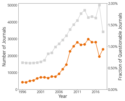 翻译:有疑问的出版物被指责为“贪婪”做法;然而,这些出版物对学术界的影响却没有得到衡量。在这里,我们通过对学术界的各类参与者进行系统和全面的分析,调查有疑问的出版物的影响,并使用数十亿份引证记录,包括联络,即期刊和出版商,以及作者等代理商,将结果与未受指控的对应方的结果进行比较。有疑问的出版物将出版商一级的自评归于其期刊,同时限制期刊一级的自评;然而,传统的日记级标准无法发现这些出版商一级的自评。我们建议采用一种混合的期刊出版商-出版量衡量标准,以发现出版商的自我偏向性引文。此外,我们还表明,有疑问的出版物的干扰力和影响力不如其对应方。我们的调查结果表明,可疑的学术出版商的引文影响过大。调查结果为针对有争议的出版物采取可采取行动的政策提供了依据。