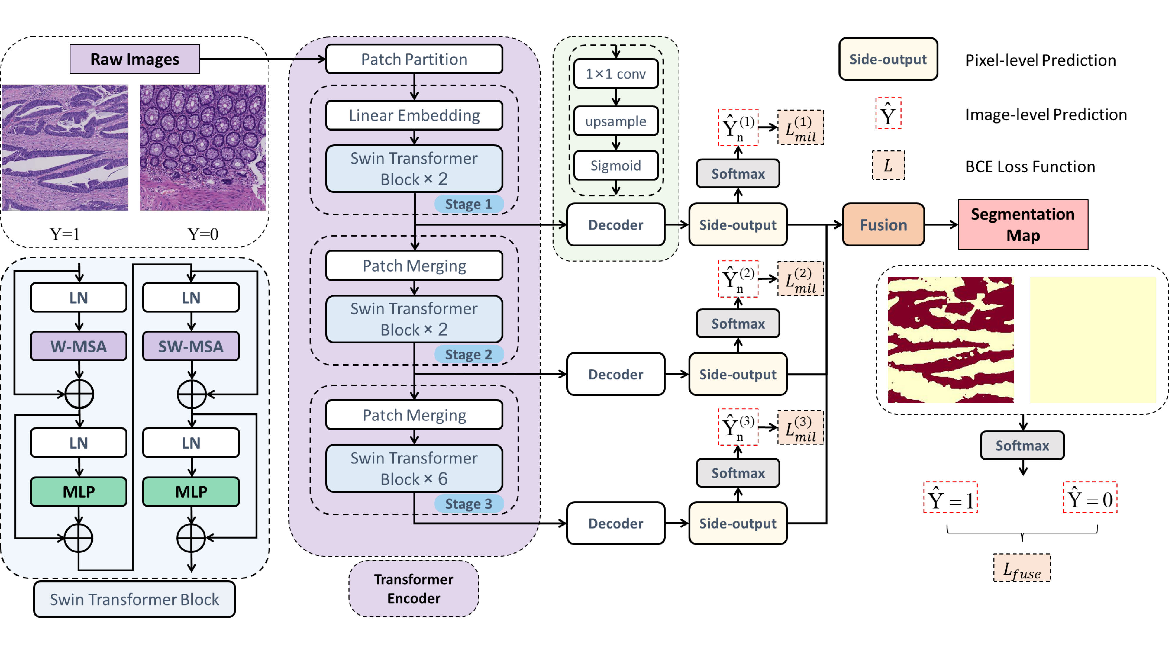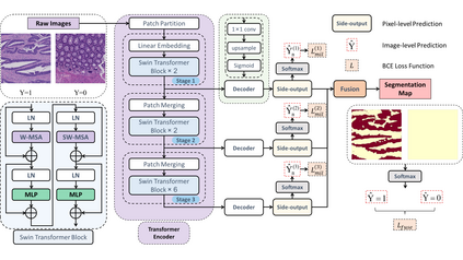 翻译:病理图像分解算法在计算机辅助诊断技术中发挥着关键作用。 发展监督不力的分解算法可以缓解医学图像说明问题,即它耗时费时费力。 作为监督不力的学习的子集,多实例学习(MIL)已证明在分解方面是有效的。然而,MIL的事例之间缺乏相关的信息,这限制了分解性表现的进一步改进。在本文中,我们提出一种新颖的、监督不力的方法,用于对病理学图像进行像素分解,将变异器引入MIL框架,以捕捉全球或长期依赖性。变异器多头自省确定了各种事例之间的关系,解决了在MIL中各情况独立的缺点。此外,还引入了深入的监督,以克服受监督不力的方法对说明的局限性,并更好地利用等级信息。结肠癌数据集的状态技术结果表明,拟议方法优于其他受监督薄弱的方法。值得相信,我们的各种应用方法具有潜力。
