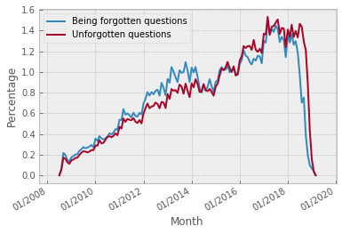 翻译:关于新技术、技术特点和技术版本的问题,随着技术的演变(随着社区成员积累经验)而出现,必须回答这些问题。与此同时,其他问题随着时间而停止重要,最终变得与用户无关。除了过滤低质量问题之外,“缓冲”问题已经变得多余,是保持堆叠溢流内容简洁和有用的一个重要步骤。在此工作中,我们研究了这一被遗忘的堆叠溢流任务。我们的工作以十多年(2008-2019年)以来的数据为基础,涵盖18.1M问题,由网站本身公布。为了更深入的理解,我们首先分析和描述一系列有待遗忘的问题,即在当前时期获得大量意见但在近期内变得不吸引人的问题。随后,我们研究了在预测这种被遗忘的问题方面广泛具备的一系列功能的能力。我们发现,在不同的类别中,我们发现一些更具有预测性的问题,而在不同的类别中,我们发现这些是更具有预测性的。我们发现,在不同的类别中,我们发现某些问题也是更具有预测性的。