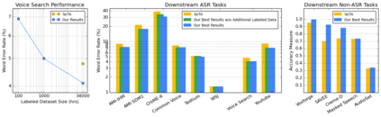 翻译:我们总结了使用大型自动语音识别(ASR)模型所做的大量努力的结果,这些模型是使用含有大约100万小时音频的大型、多种无标签数据集进行预先培训的。我们发现,将培训前、自我培训和扩大模型规模结合起来,大大提高了数据效率,即使对于涉及数万小时标签数据的巨大任务也是如此。特别是,在具有34千小时标签数据的ASR任务方面,我们通过微调一个80亿参数的预培训后模型,我们可以将培训前最先进的功能与仅3%的培训数据匹配起来,并大大改进SoTA全套培训。我们还报告了使用大型培训前和自我培训模式,用于涵盖广泛的语音领域并跨越多层次数据集大小的大型下游任务,包括在许多公共基准上获得SoTA的绩效,从而获得普遍效益。此外,我们利用培训前网络的经验,在非ASA任务上取得结果。
