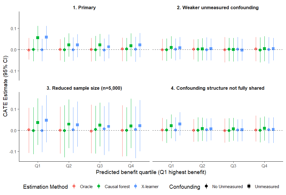 Observational studies developing causal machine learning (ML) models for the prediction of individualized treatment effects (ITEs) seldom conduct empirical evaluations to assess the conditional exchangeability assumption. We aimed to evaluate the performance of these models under conditional exchangeability violations and the utility of negative control outcomes (NCOs) as a diagnostic. We conducted a simulation study to examine confounding bias in ITE estimates generated by causal forest and X-learner models under varying conditions, including the presence or absence of true heterogeneity. We simulated data to reflect real-world scenarios with differing levels of confounding, sample size, and NCO confounding structures. We then estimated and compared subgroup-level treatment effects on the primary outcome and NCOs across settings with and without unmeasured confounding. When conditional exchangeability was violated, causal forest and X-learner models failed to recover true treatment effect heterogeneity and, in some cases, falsely indicated heterogeneity when there was none. NCOs successfully identified subgroups affected by unmeasured confounding. Even when NCOs did not perfectly satisfy its ideal assumptions, it remained informative, flagging potential bias in subgroup level estimates, though not always pinpointing the subgroup with the largest confounding. Violations of conditional exchangeability substantially limit the validity of ITE estimates from causal ML models in routinely collected observational data. NCOs serve a useful empirical diagnostic tool for detecting subgroup-specific unmeasured confounding and should be incorporated into causal ML workflows to support the credibility of individualized inference.