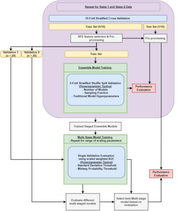 Aims. The purpose of this study is to create a multi-stage machine learning model to predict cardiac resynchronization therapy (CRT) response for heart failure (HF) patients. This model exploits uncertainty quantification to recommend additional collection of single-photon emission computed tomography myocardial perfusion imaging (SPECT MPI) variables if baseline clinical variables and features from electrocardiogram (ECG) are not sufficient. Methods. 218 patients who underwent rest-gated SPECT MPI were enrolled in this study. CRT response was defined as an increase in left ventricular ejection fraction (LVEF) > 5% at a 6 month follow-up. A multi-stage ML model was created by combining two ensemble models. Results. The response rate for CRT was 55.5% (n = 121) with overall male gender 61.0% (n = 133), an average age of 62.0, and LVEF of 27.7. The multi-stage model performed similarly to Ensemble 2 (which utilized the additional SPECT data) with AUC of 0.75 vs. 0.77, accuracy of 0.71 vs. 0.69, sensitivity of 0.70 vs. 0.72, and specificity 0.72 vs. 0.65, respectively. However, the multi-stage model only required SPECT MPI data for 52.7% of the patients across all folds. Conclusions. By using rule-based logic stemming from uncertainty quantification, the multi-stage model was able to reduce the need for additional SPECT MPI data acquisition without sacrificing performance.