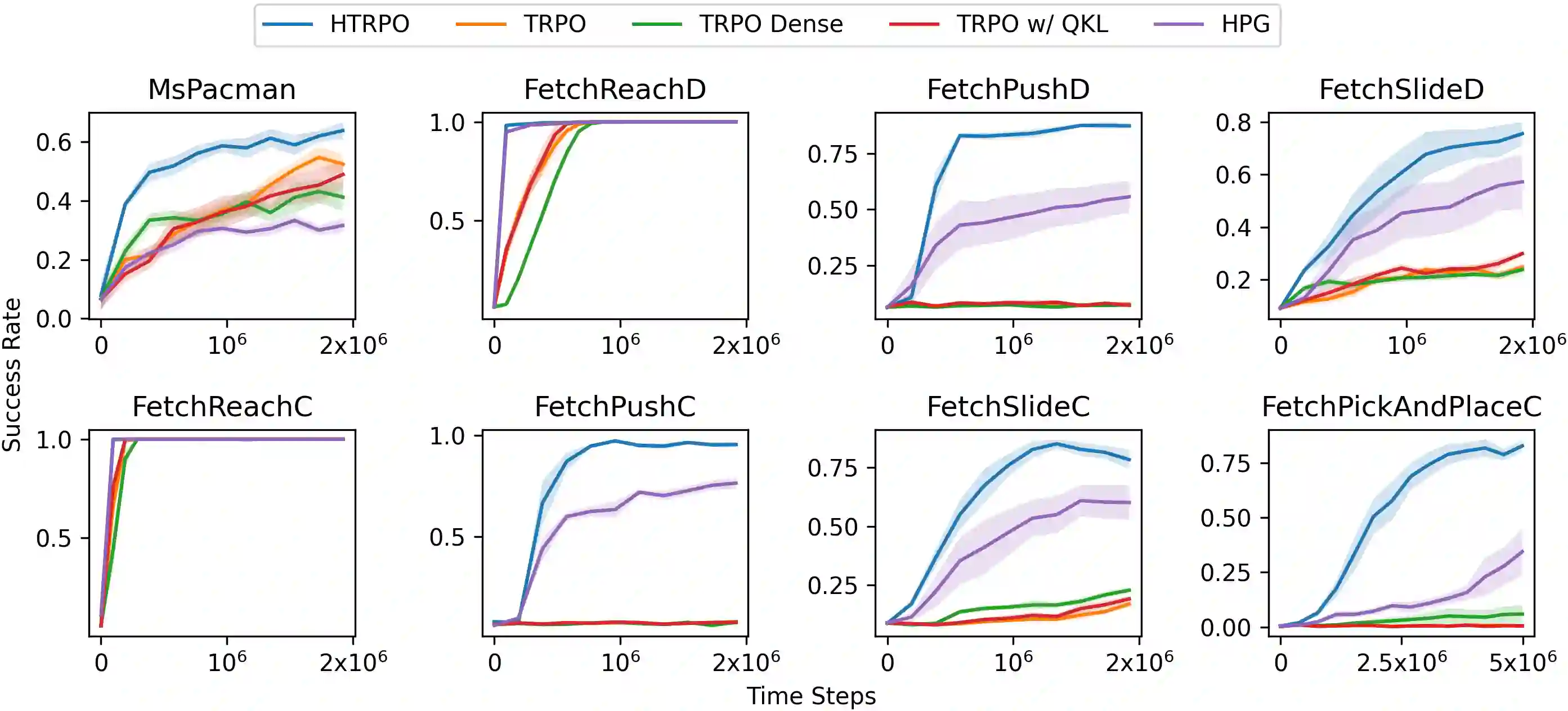 翻译:加强学习(RL) 少有回报是一个重大挑战。 我们提出 emph{ Hindsight Trust 区域政策优化 (HTRPO), 这是一种新的 RL 算法, 将极成功的TRPO 算法与 emph{hindsight} 相扩展, 以应对少有回报的挑战。 光观 指的是算法从不同目标的信息中学习的能力, 包括并非用于当前任务的信息。 HTRPO 利用了两个主要想法。 它引入了 QKL, 即 QKL, 这是对信任区域KL 差异限制的二次接近, 导致 KL 差异估计的差异减少, 并改进了政策更新的稳定性。 它还展示了 Hindsight 目标过滤(HGF) 以选择演练后视目标 。 在实验中, 我们评估 HTRPO 各种稀有的奖赏任务, 包括简单的基准、 以图像为基础的 Atari 游戏 和 模拟机器人控制 。 缩略研究表明, QKL 和 HGFPO 都有助于学习稳定性和高绩效。 。 比较结果表明, 在所有任务中, HTRPO 都 都 超越了 RTRPO 和 HGPO 。