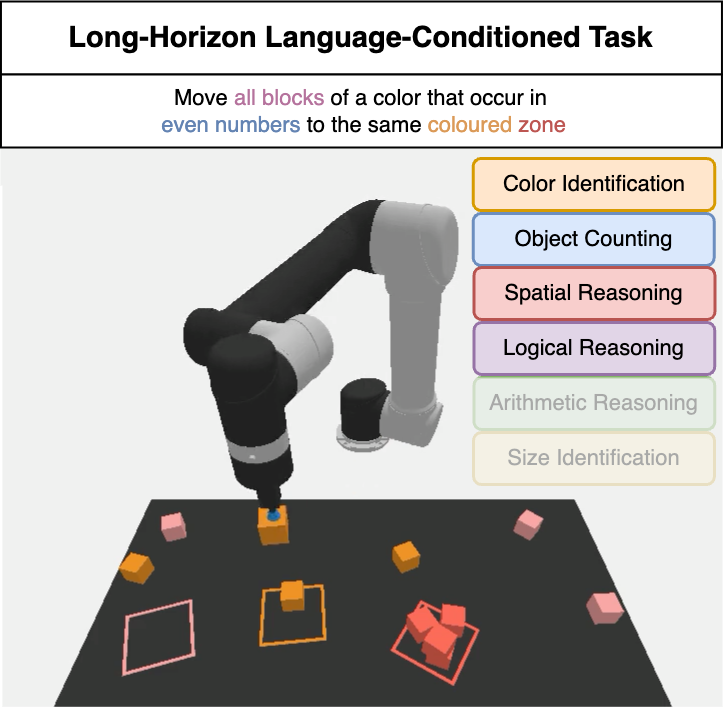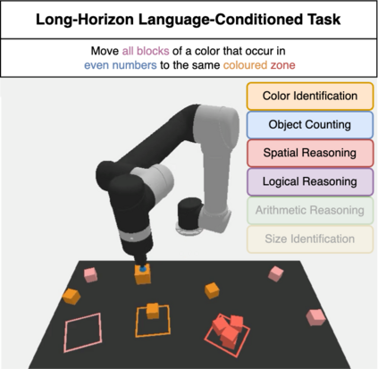 The convergence of embodied agents and large language models (LLMs) has brought significant advancements to embodied instruction following. Particularly, the strong reasoning capabilities of LLMs make it possible for robots to perform long-horizon tasks without expensive annotated demonstrations. However, public benchmarks for testing the long-horizon reasoning capabilities of language-conditioned robots in various scenarios are still missing. To fill this gap, this work focuses on the tabletop manipulation task and releases a simulation benchmark, \textit{LoHoRavens}, which covers various long-horizon reasoning aspects spanning color, size, space, arithmetics and reference. Furthermore, there is a key modality bridging problem for long-horizon manipulation tasks with LLMs: how to incorporate the observation feedback during robot execution for the LLM's closed-loop planning, which is however less studied by prior work. We investigate two methods of bridging the modality gap: caption generation and learnable interface for incorporating explicit and implicit observation feedback to the LLM, respectively. These methods serve as the two baselines for our proposed benchmark. Experiments show that both methods struggle to solve some tasks, indicating long-horizon manipulation tasks are still challenging for current popular models. We expect the proposed public benchmark and baselines can help the community develop better models for long-horizon tabletop manipulation tasks.