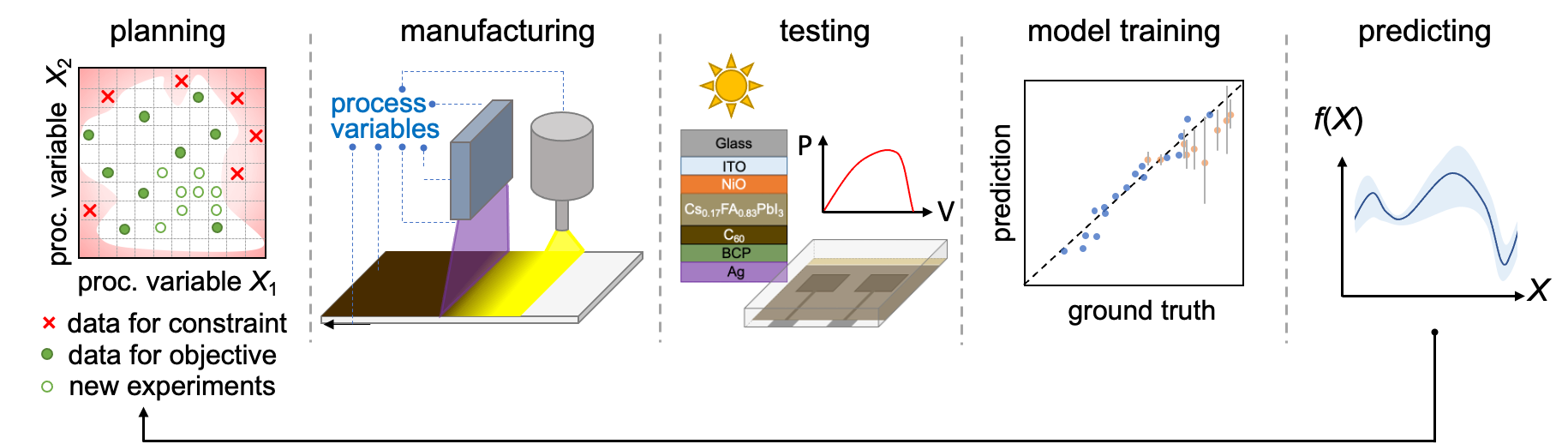 翻译:过去十年来,在小型实验室设备电流转换效率方面, Perovskite光伏伏(PV)实现了快速的快速发展;然而,成功的商业化仍然需要进一步开发低成本、可缩放和高通量制造技术。 开发新制造技术的主要挑战之一是高维参数空间和机器学习(ML),可以用来加速光伏渗透率的缩放。在这里,我们提出了一个ML指导的制造流程优化连续学习框架。我们将我们的方法应用于快速喷射等离子膜处理技术(RSPP),用于环境条件下的渗透薄薄膜。在有限的实验预算筛选100个条件过程条件下,我们展示了效率提高至18.5%的最佳装置,我们还在实验中发现了10个独特的条件,以产生超过17%的顶级效率装置,这比我们伪随机拉丁超立方取样的成功率高5倍。我们的模式通过三种创新得以实现。 (a)通过将先前实验性数据纳入下一个实验性数据,将微薄薄膜薄薄膜处理技术,将实验过程灵活地转移知识,作为软性精确的试测度预算,(b)在进行高水平的测试时,同时选择人类主观性设计区域。