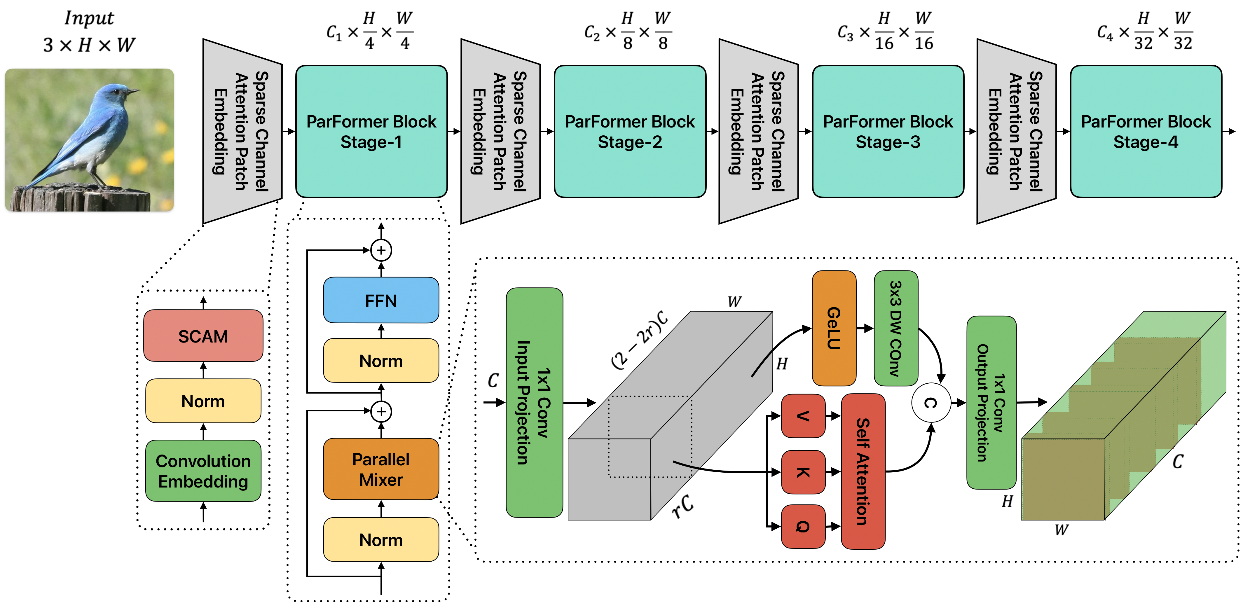 Convolutional Neural Networks (CNNs) and Transformers have achieved remarkable success in computer vision tasks. However, their deep architectures often lead to high computational redundancy, making them less suitable for resource-constrained environments, such as edge devices. This paper introduces ParFormer, a novel vision transformer that addresses this challenge by incorporating a Parallel Mixer and a Sparse Channel Attention Patch Embedding (SCAPE). By combining convolutional and attention mechanisms, ParFormer improves feature extraction. This makes spatial feature extraction more efficient and cuts down on unnecessary computation. The SCAPE module further reduces computational redundancy while preserving essential feature information during down-sampling. Experimental results on the ImageNet-1K dataset show that ParFormer-T achieves 78.9\% Top-1 accuracy with a high throughput on a GPU that outperforms other small models with 2.56$\times$ higher throughput than MobileViT-S, 0.24\% faster than FasterNet-T2, and 1.79$\times$ higher than EdgeNeXt-S. For edge device deployment, ParFormer-T excels with a throughput of 278.1 images/sec, which is 1.38 $\times$ higher than EdgeNeXt-S and 2.36$\times$ higher than MobileViT-S, making it highly suitable for real-time applications in resource-constrained settings. The larger variant, ParFormer-L, reaches 83.5\% Top-1 accuracy, offering a balanced trade-off between accuracy and efficiency, surpassing many state-of-the-art models. In COCO object detection, ParFormer-M achieves 40.7 AP for object detection and 37.6 AP for instance segmentation, surpassing models like ResNet-50, PVT-S and PoolFormer-S24 with significantly higher efficiency. These results validate ParFormer as a highly efficient and scalable model for both high-performance and resource-constrained scenarios, making it an ideal solution for edge-based AI applications.