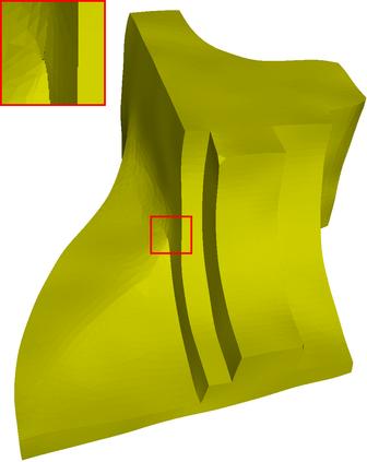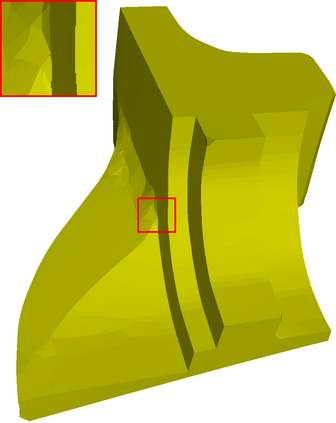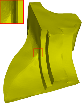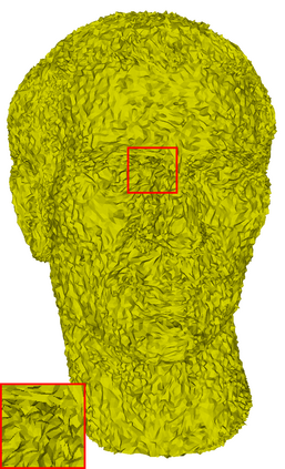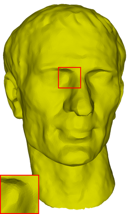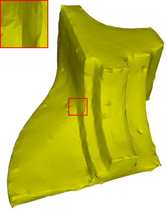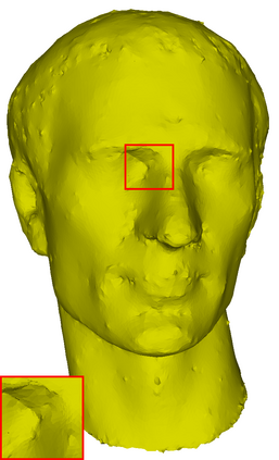 We present a semi-sparsity model for 3D triangular mesh denoising, which is motivated by the success of semi-sparsity regularization in image processing applications. We demonstrate that such a regularization model can be also applied for graphic processing and gives rise to similar simultaneous-fitting results in preserving sharp features and piece-wise smoothing surfaces. Specifically, we first describe the piecewise constant function spaces associated with the differential operators on triangular meshes and then show how to extend the semi-sparsity model to meshes denoising. To verify its effectiveness, we present an efficient iterative algorithm based on the alternating direction method of multipliers (ADMM) technique and show the experimental results on synthetic and real scanning data against the state-of-the-arts both visually and quantitatively.
