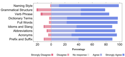 翻译:本文件介绍了对专业软件开发者进行的关于命名源代码方法标准的大规模(+1100答复)调查的结果。各种源代码方法名称标准来自软件工程文献,并得到其支持。调查的目的是确定开发者是否普遍一致认为这些标准在实践中得到接受和使用。此外,本文件审查了调查答复中的经验年和编程语言知识等因素。调查结果表明,参与者非常同意各种标准的重要性及其如何适用于名称。此外,调查还表明,多年的经验和参与者使用的编程语言几乎不影响他们的答复。