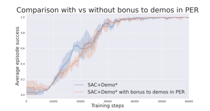 翻译:近些年来,深层强化学习(DRL)成功地侵入了复杂的决策应用程序,如机器人、自主驾驶或视频游戏等。然而,众所周知的DRL算法的警告是效率低,需要大量的数据才能汇集。非政策算法往往更具抽样效率,并且能够从重播缓冲中储存的任何非政策数据中得到更多好处。专家演示是这类数据的一个流行来源:代理商暴露于成功的州和行动,从而可以加速学习过程和改善业绩。过去,人们曾提出多种想法,以便很好地利用缓冲演示,例如仅对演示进行预培训,或尽量减少额外的成本功能。我们正在进行一项研究,对其中的一些想法进行孤立评估,看看其中哪些想法具有最显著的影响。我们还根据对演示和成功事件给予的奖励奖金,提出了一种新的方法。首先,我们奖励从演示到鼓励代理商与所展示的行为相匹配的转变。随后,在收集成功插图时,我们甚至将其在演示前期演示前的过渡与预示器的过渡标注,然后又将我们之前的试算法的试算法作为我们的试算的基础。我们之前的试算的试算,让我们的试算的试算,让我们的试算法的试算的试算法,让我们的试算,让我们的试算的试算法的试算的试算。