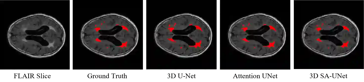 White Matter Hyperintensity (WMH) is an imaging feature related to various diseases such as dementia and stroke. Accurately segmenting WMH using computer technology is crucial for early disease diagnosis. However, this task remains challenging due to the small lesions with low contrast and high discontinuity in the images, which contain limited contextual and spatial information. To address this challenge, we propose a deep learning model called 3D Spatial Attention U-Net (3D SA-UNet) for automatic WMH segmentation using only Fluid Attenuation Inversion Recovery (FLAIR) scans. The 3D SA-UNet introduces a 3D Spatial Attention Module that highlights important lesion features, such as WMH, while suppressing unimportant regions. Additionally, to capture features at different scales, we extend the Atrous Spatial Pyramid Pooling (ASPP) module to a 3D version, enhancing the segmentation performance of the network. We evaluate our method on publicly available dataset and demonstrate the effectiveness of 3D spatial attention module and 3D ASPP in WMH segmentation. Through experimental results, it has been demonstrated that our proposed 3D SA-UNet model achieves higher accuracy compared to other state-of-the-art 3D convolutional neural networks.