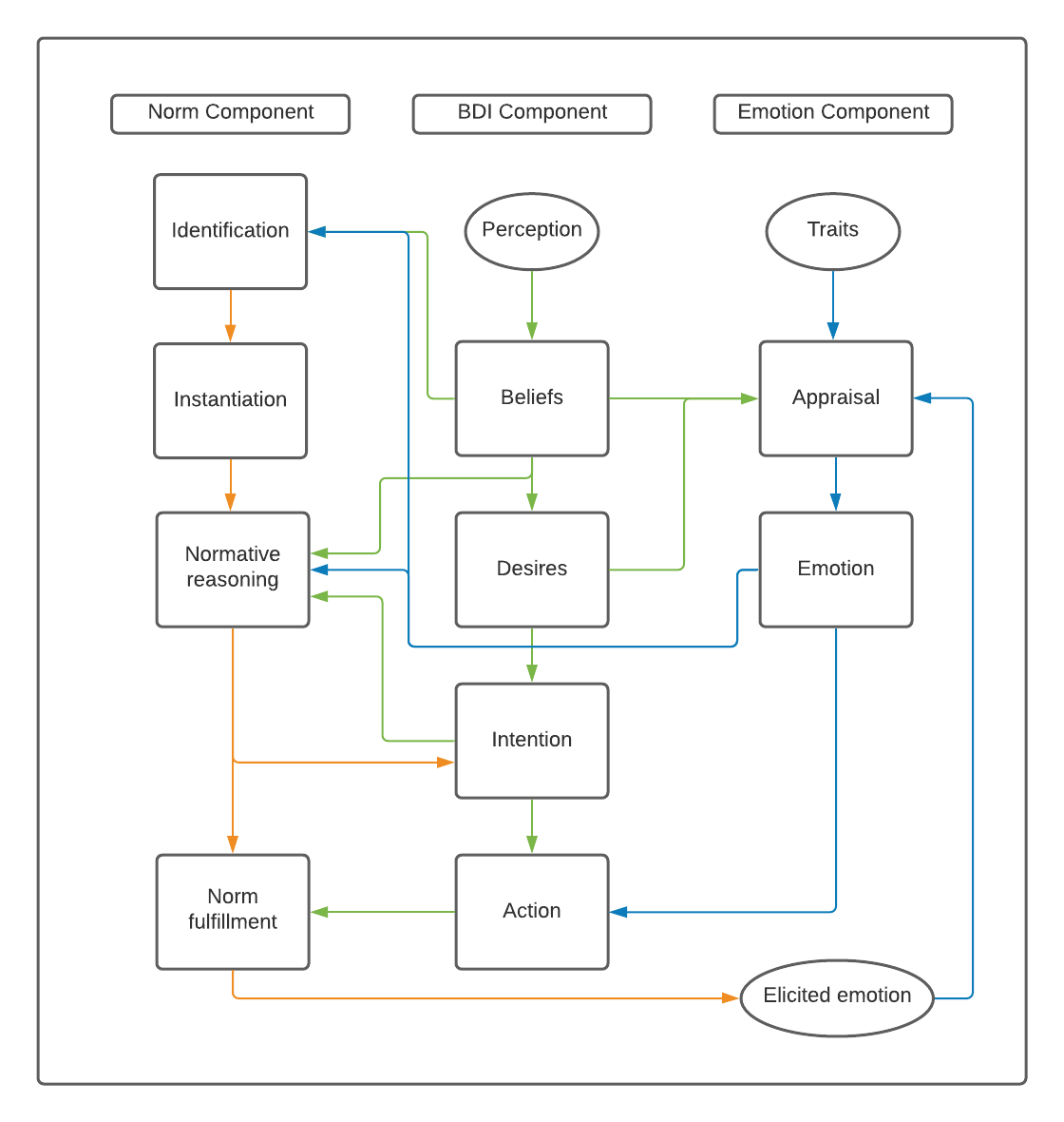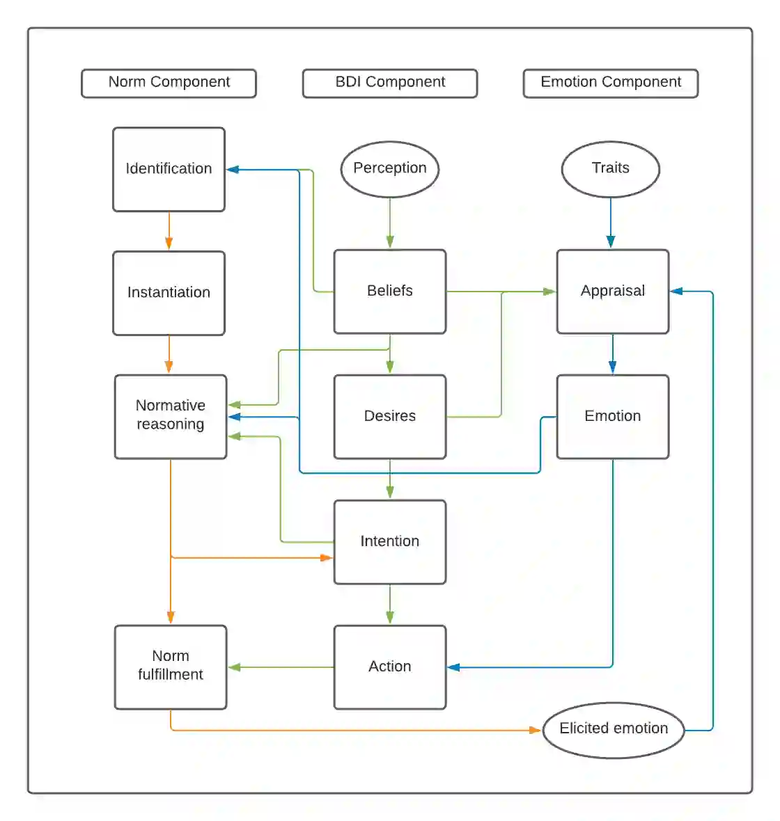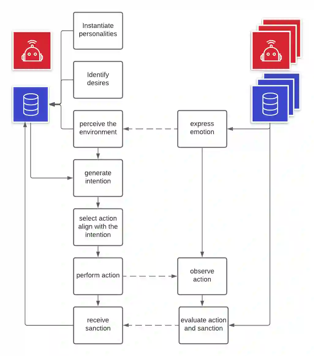 翻译:此外,一些社会规范是人类社会集体和可接受的群体行为的特点。一些社会规范产生于代理人或人的相互作用。为了实现代理人自治并使规范满意度得到解释,我们把情感纳入规范推理过程,以评价是否遵守或违反规范。具体地说,在选择执行行动之前,代理人观察环境,在标准满足或违反社会规范之后,推断其内部状态的状态和后果。规范满足和违反行为引起进一步的情感,随后的情感影响规范的执行。本文件通过社会模拟试验,调查模拟情感如何影响社会规范的出现和健全性。我们发现,代理人有能力考虑对规范满足和违反结果的情感反应(1) 推动规范的遵守;(2) 改善社会福利。