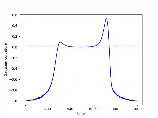 翻译:随机字段模型是用于研究随机复杂系统的数学结构。 在本文中, 我们使用第一和第二种基本形式( Fisher 信息矩阵) 计算高森随机字段元件的形状操作器。 我们使用 Markov 链子 Monte Carlo 技术, 模拟这些随机字段的动态, 并计算高萨参数空间的曲线, 分析此数量在阶段转换过程中的变化 。 在模拟中, 我们观察到一个我们称之为 emph{ curvure effect} 的意外现象, 这表明当系统昆虫出现大幅增长/ 下降时, 基础参数空间发生了高度不对称的几何形变形。 这种不对称模式与歇斯氏体的出现有关, 导致动态中的时间的内在箭头。