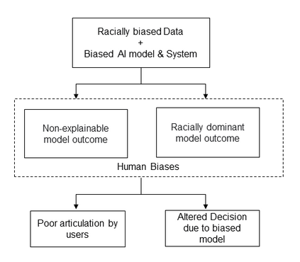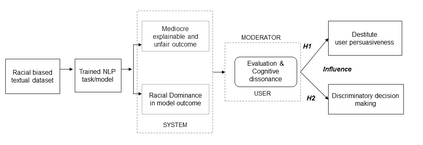 Language data and models demonstrate various types of bias, be it ethnic, religious, gender, or socioeconomic. AI/NLP models, when trained on the racially biased dataset, AI/NLP models instigate poor model explainability, influence user experience during decision making and thus further magnifies societal biases, raising profound ethical implications for society. The motivation of the study is to investigate how AI systems imbibe bias from data and produce unexplainable discriminatory outcomes and influence an individual's articulateness of system outcome due to the presence of racial bias features in datasets. The design of the experiment involves studying the counterfactual impact of racial bias features present in language datasets and its associated effect on the model outcome. A mixed research methodology is adopted to investigate the cross implication of biased model outcome on user experience, effect on decision-making through controlled lab experimentation. The findings provide foundation support for correlating the implication of carry-over an artificial intelligence model solving NLP task due to biased concept presented in the dataset. Further, the research outcomes justify the negative influence on users' persuasiveness that leads to alter the decision-making quotient of an individual when trying to rely on the model outcome to act. The paper bridges the gap across the harm caused in establishing poor customer trustworthiness due to an inequitable system design and provides strong support for researchers, policymakers, and data scientists to build responsible AI frameworks within organizations.