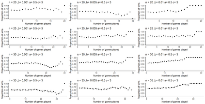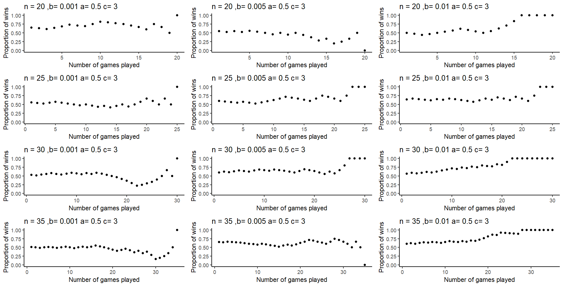 To determine any pattern in an ordered binary sequence of wins and losses of a player over a period of time, the Runs Test may show results contradictory to the intuition visualised by scatter plots of win proportions over time. We design a test suitable for this purpose by computing the gaps between two consecutive wins and then using exact binomial tests and non-parametric tests like Kendall's Tau and Siegel-Tukey's test for scale problem for determination of heteroscedastic patterns and direction of the occurrence of wins. Further modifications suggested by Jan Vegelius(1982) have been applied in the Siegel Tukey test to adjust for tied ranks.