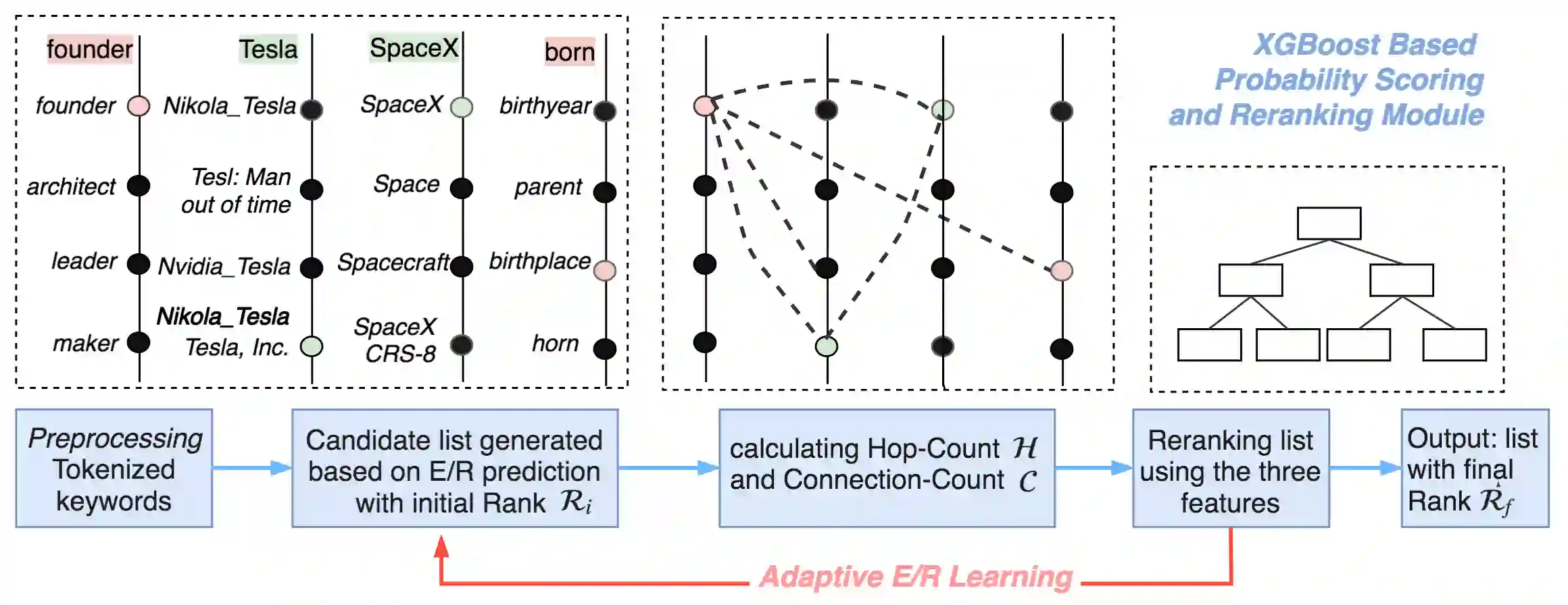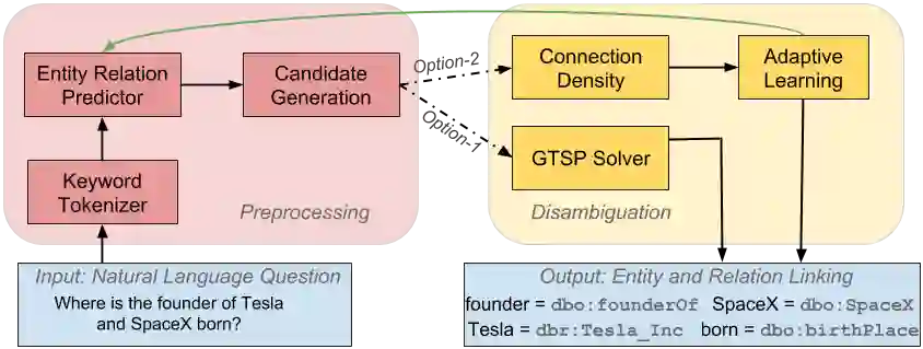 翻译:与知识图有关的许多解答系统都依赖于实体和关联部分,以便将自然语言输入与基本知识图连接起来。传统上,实体连接和关联是作为依附的相继任务或作为独立的平行任务进行的。在本文件中,我们提议了一个称为EARL的框架,将实体连接和关联作为联合任务。EARL执行两种不同的解决方案战略,我们在本文件中提供比较分析:第一个战略是将联合实体正规化,将任务关联作为通用旅行推销员问题(GTSP)的一个实例。为了计算可行,我们使用了近似GTSP解答器。第二个战略利用机器学习来利用知识图中节点之间的连接密度。它依靠三个基本特征和重新排列步骤来预测实体和关系。我们将这些战略与5000个数据集进行比较并评估。两种战略都大大超越了实体和关联当前的最新方法。
