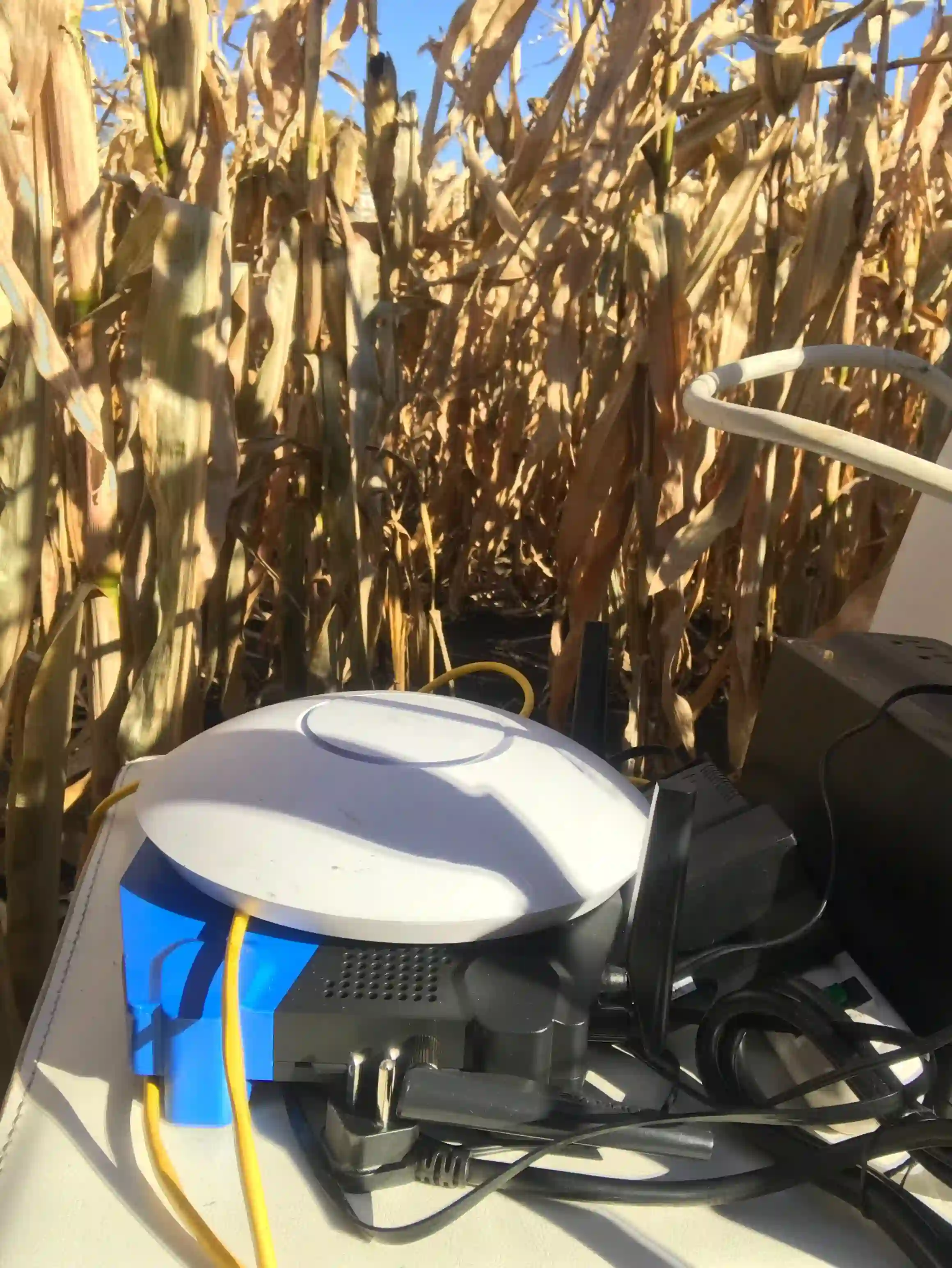 Emerging autonomous farming techniques rely on smart devices such as multi-spectral cameras, collecting fine-grained data, and robots performing tasks such as de-weeding, berry-picking, etc. These techniques require a high throughput network, supporting 10s of Mbps per device at the scale of tens to hundreds of devices in a large farm. We conduct a survey across 12 agronomists to understand these networking requirements of farm workloads and perform extensive measurements of WiFi 6 performance in a farm to identify the challenges in meeting them. Our measurements reveal how network capacity is fundamentally limited in such a setting, with severe degradation in network performance due to crop canopy, and spotlight farm networks as an emerging new problem domain that can benefit from smarter network resource management decisions. To that end, we design Cornet, a network for supporting on-farm applications that comprises: (i) a multi-hop mesh of WiFi routers that uses a strategic combination of 2.4GHz and 5GHz bands as informed by our measurements, and (ii) a centralized traffic engineering (TE) system that uses a novel abstraction of resource units to reason about wireless network capacity and make TE decisions (schedule flows, assign flow rates, and select routes and channels). Our evaluation, using testbeds in a farm and trace-driven simulations, shows how Cornet achieves 1.4 $\times$ higher network utilization and better meets application demands, compared to standard wireless mesh strategies.