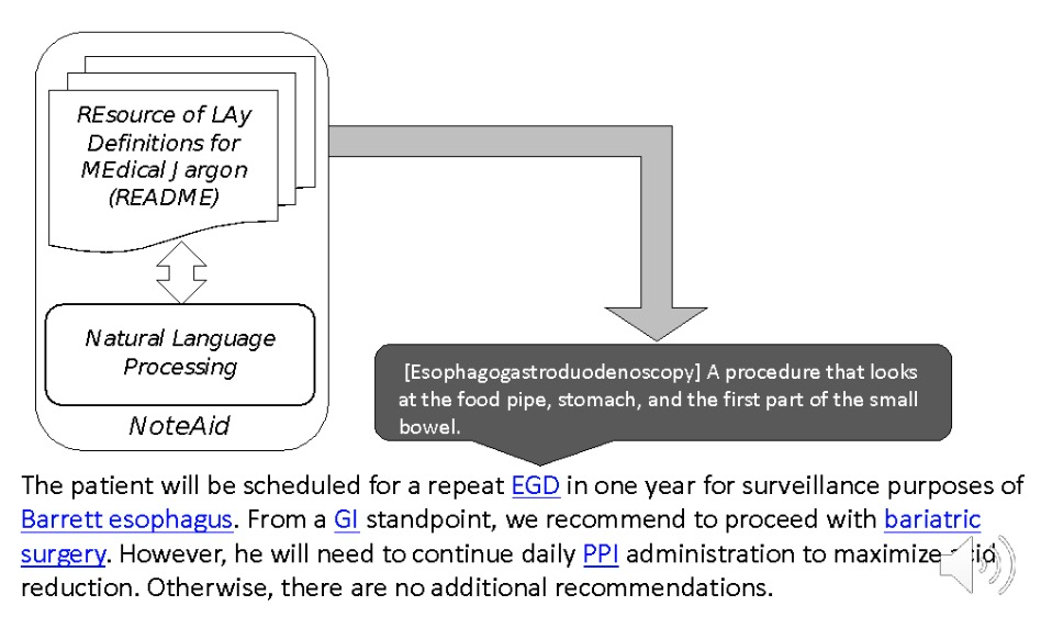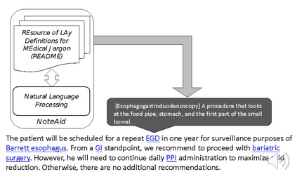The advancement in healthcare has shifted focus toward patient-centric approaches, particularly in self-care and patient education, facilitated by access to Electronic Health Records (EHR). However, medical jargon in EHRs poses significant challenges in patient comprehension. To address this, we introduce a new task of automatically generating lay definitions, aiming to simplify complex medical terms into patient-friendly lay language. We first created the README dataset, an extensive collection of over 50,000 unique (medical term, lay definition) pairs and 300,000 mentions, each offering context-aware lay definitions manually annotated by domain experts. We have also engineered a data-centric Human-AI pipeline that synergizes data filtering, augmentation, and selection to improve data quality. We then used README as the training data for models and leveraged a Retrieval-Augmented Generation method to reduce hallucinations and improve the quality of model outputs. Our extensive automatic and human evaluations demonstrate that open-source mobile-friendly models, when fine-tuned with high-quality data, are capable of matching or even surpassing the performance of state-of-the-art closed-source large language models like ChatGPT. This research represents a significant stride in closing the knowledge gap in patient education and advancing patient-centric healthcare solutions.