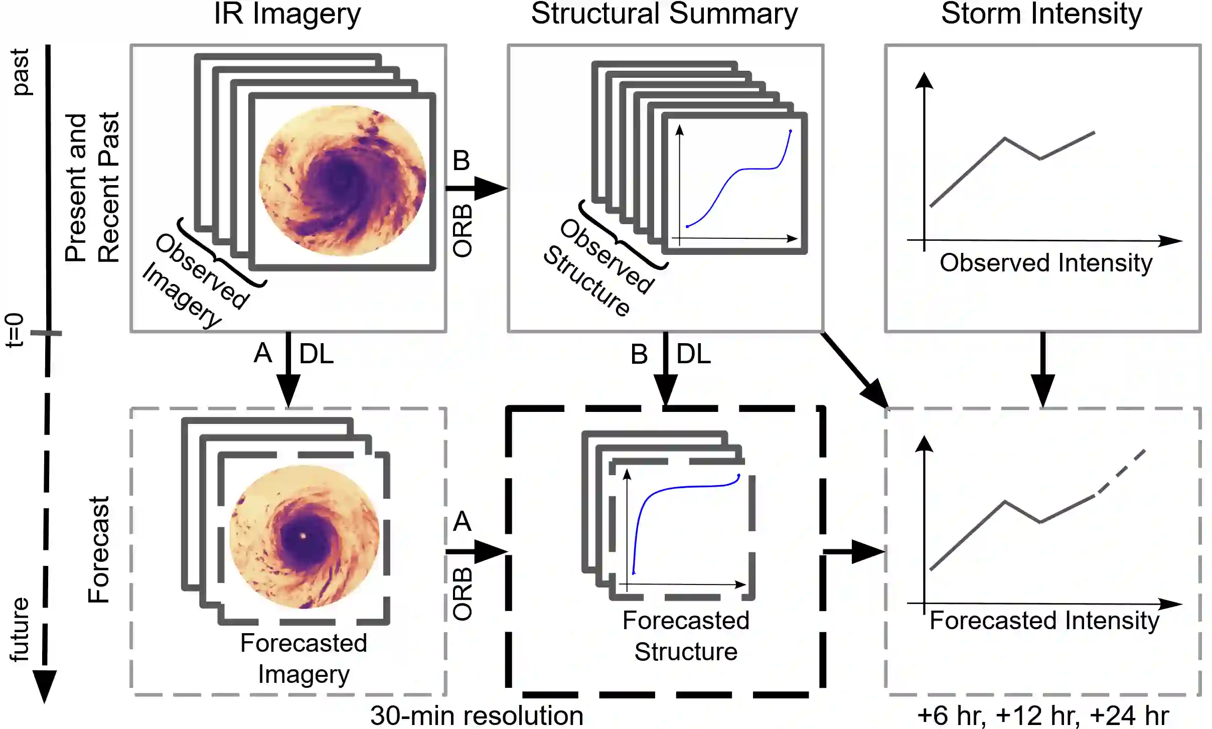 翻译:热带气旋(TC)强度预测最终由人类预报员发布。 人流中管道要求任何预测指导必须容易被技术合作专家消化,才能在像国家飓风中心这样的业务中心得到采纳。 我们提出的框架利用深层次的学习向预报员提供一些东西,既不是端到端预测模型,也不是传统的强度指导:一个强大的工具,用于监测具有物理相关性的关键预测员的高维时间序列,以及了解预报员如何相互联系和短期强度变化的手段。
