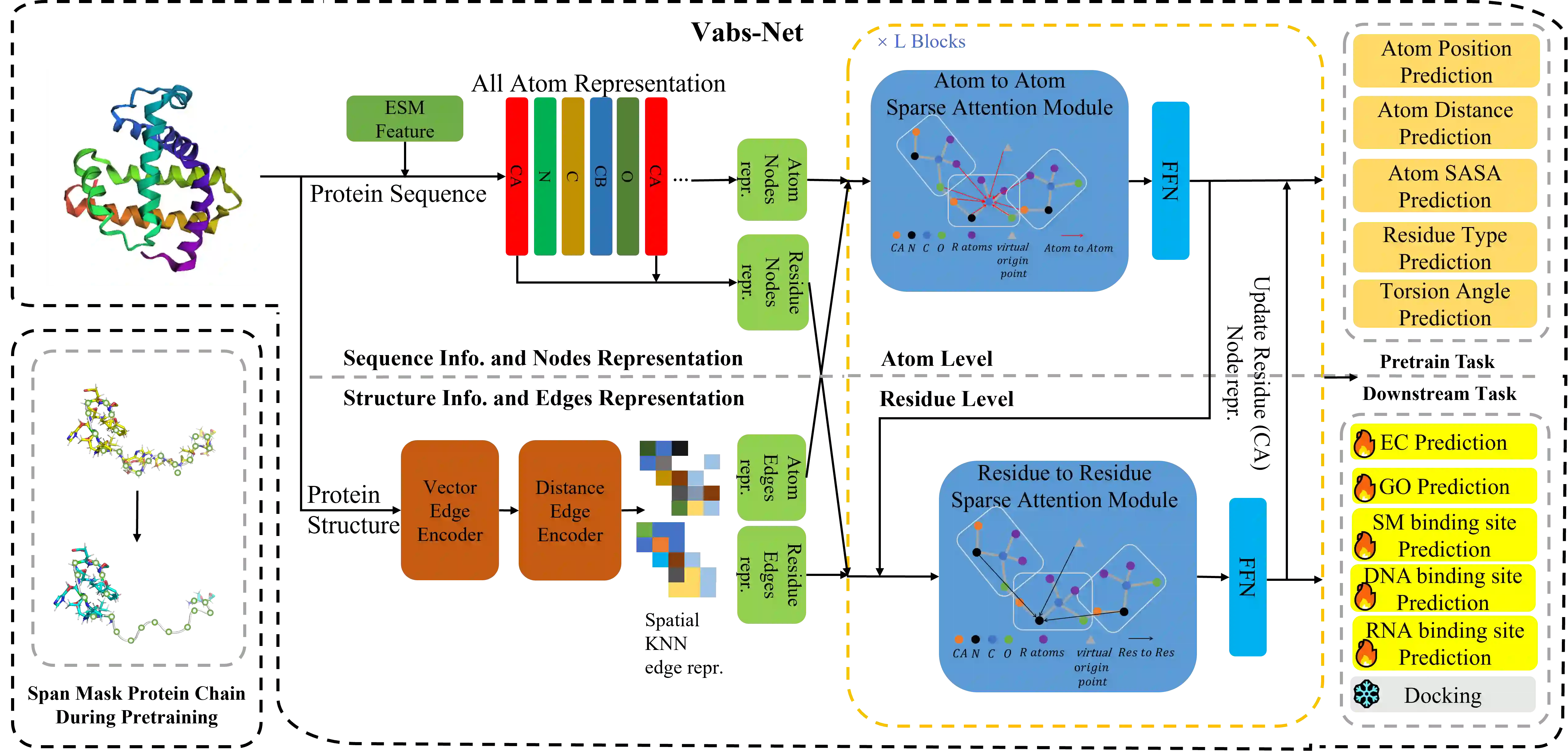 In recent years, there has been a surge in the development of 3D structure-based pre-trained protein models, representing a significant advancement over pre-trained protein language models in various downstream tasks. However, most existing structure-based pre-trained models primarily focus on the residue level, i.e., alpha carbon atoms, while ignoring other atoms like side chain atoms. We argue that modeling proteins at both residue and atom levels is important since the side chain atoms can also be crucial for numerous downstream tasks, for example, molecular docking. Nevertheless, we find that naively combining residue and atom information during pre-training typically fails. We identify a key reason is the information leakage caused by the inclusion of atom structure in the input, which renders residue-level pre-training tasks trivial and results in insufficiently expressive residue representations. To address this issue, we introduce a span mask pre-training strategy on 3D protein chains to learn meaningful representations of both residues and atoms. This leads to a simple yet effective approach to learning protein representation suitable for diverse downstream tasks. Extensive experimental results on binding site prediction and function prediction tasks demonstrate our proposed pre-training approach significantly outperforms other methods. Our code will be made public.