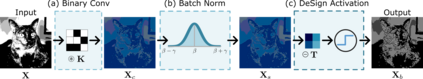 Binary Neural Networks emerged as a cost-effective and energy-efficient solution for computer vision tasks by binarizing either network weights or activations. However, common binary activations, such as the Sign activation function, abruptly binarize the values with a single threshold, losing fine-grained details in the feature outputs. This work proposes an activation that applies multiple thresholds following dithering principles, shifting the Sign activation function for each pixel according to a spatially periodic threshold kernel. Unlike literature methods, the shifting is defined jointly for a set of adjacent pixels, taking advantage of spatial correlations. Experiments over the classification task demonstrate the effectiveness of the designed dithering Sign activation function as an alternative activation for binary neural networks, without increasing the computational cost. Further, DeSign balances the preservation of details with the efficiency of binary operations.