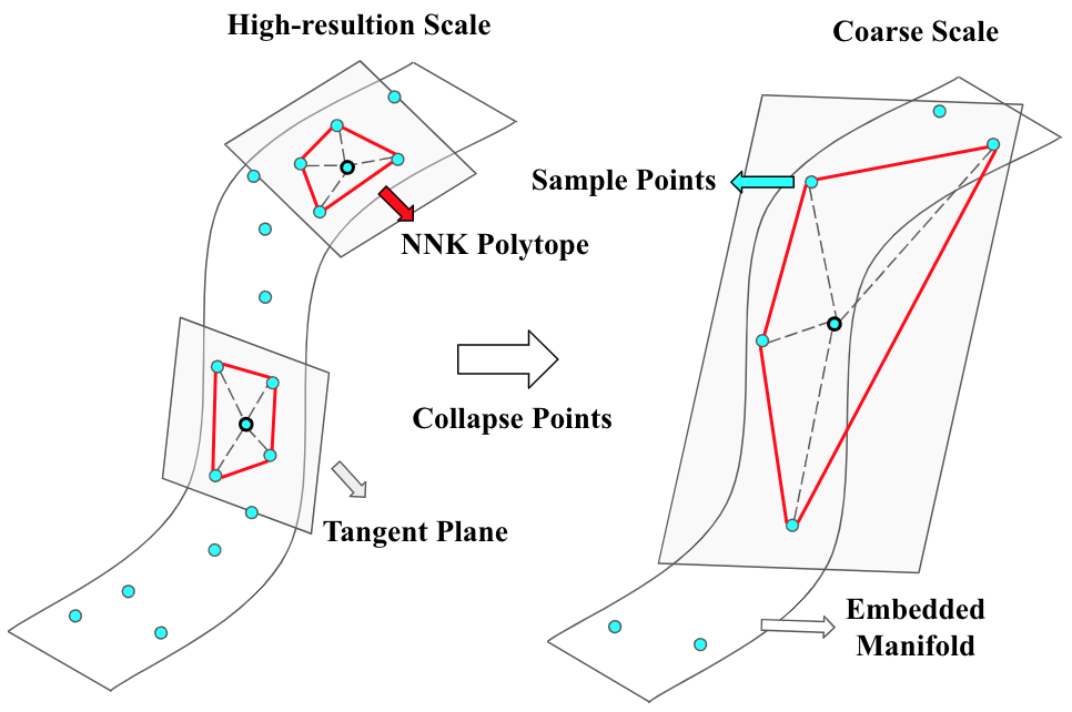 翻译:现代机器学习系统越来越多地接受高维空间内嵌的大量数据培训。 通常在不分析数据集结构的情况下进行。 在这项工作中,我们提出了一个研究数据几何结构的框架。 我们利用我们最近推出的非负内核回归图来估计数据多重( 精度) 的点密度、 内在尺寸和线性( 精度) 。 我们进一步将图形构造和几何估计归纳为多重规模, 反复地将输入数据中的相邻区域合并 。 我们的实验表明, 在估计合成和真实数据集中数据元数的本地几何性方面, 我们所建议的方法比其他基线有效 。
