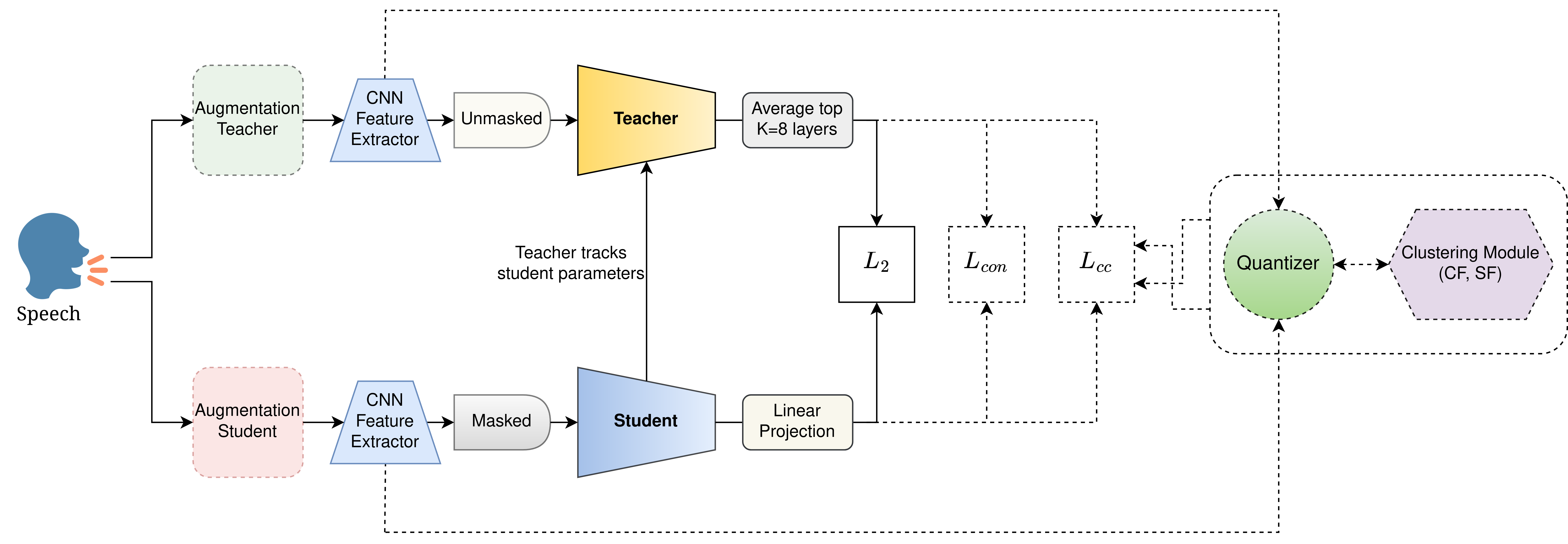 翻译:在本文中,我们提出一个新的“自我监督学习”算法,名为“数据2vec-aqc”,用于从未贴标签的语音数据中学习语音演示。我们的目标是在未贴标签和标签的数据都有限的领域改进语音的 SSL 。根据最近引入的数据2vec,我们为数据2vec 框架引入了额外的模块,以利用数据增强、量化的表达和集成的好处。这些模块之间的相互作用有助于解决交叉争议损失,作为另一个自我监督的目标。数据2vec-aqc 实现了对LibriSpeech测试-peech测试-其他系统的现有最新数据2vec系统的14.1%和20.9%相对WER的改进,而没有使用任何语言模型。在对切换板数据进行微调时,我们提议的模型也实现了比基线数据2vec的17.8%的相对WER改进。