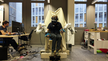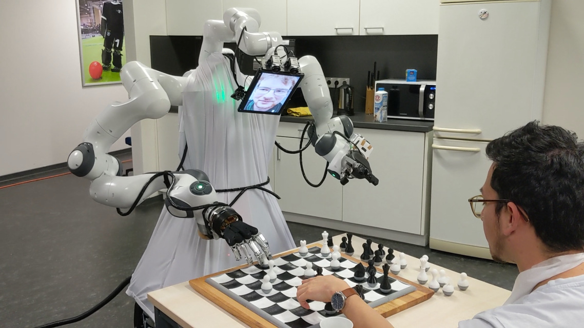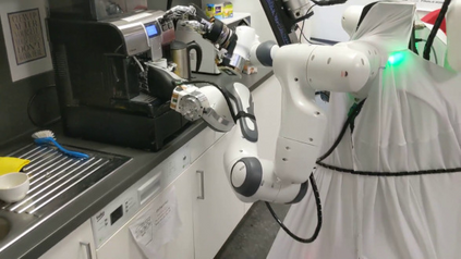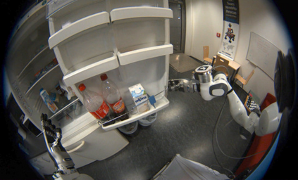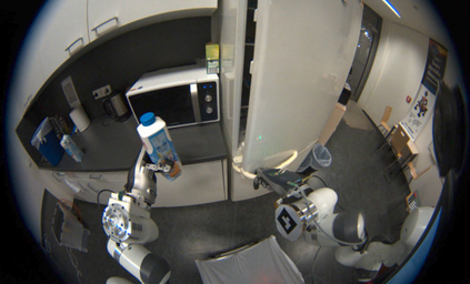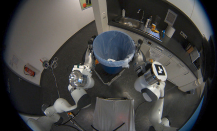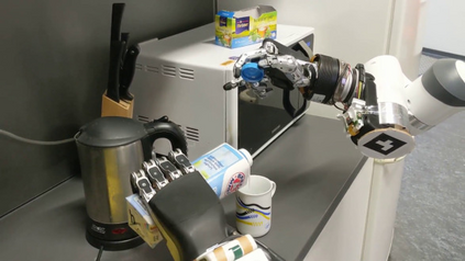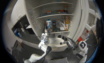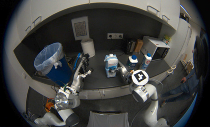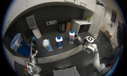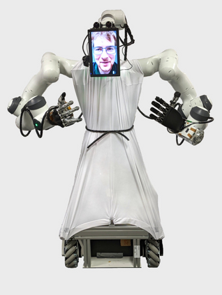 翻译:机器人自动操作员将手臂和手指通过一个基于外骨骼的操作员站驱动,该站提供手腕和每个手指的强力反馈。机器人通灵安装在Holonomic基地,在典型的室内情景中提供移动能力,使用3D舵装置加以控制。最后,机器人装有一台6D移动头,配有立体摄像机,将图像传送到操作员穿戴的VR HMD上。动作拉长是用球形显示隐藏的。头部还带有远程屏幕,显示操作员与面部动动画的合成图像,从而能够与远程人直接互动。我们成功地在用户研究中与未受训练的操作员进行了系统改进,作为长期和更为复杂的综合的任务。我们讨论了可能的经验教训。
