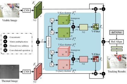 翻译:许多 RGB- T 跟踪器试图通过使用适应加权机制( 或关注机制) 实现强强的特征代表。 与这些工程不同, 我们提议采用一个新的动态模式- 显示过滤器生成模块( 名为 MFGNet ), 通过适应性调整各种输入图像的聚合内核来提升可见数据和热数据之间的信息通信。 鉴于图像配对作为输入, 我们首先将其特征与主干网络编码。 然后, 我们将这些特征地图连接起来, 并用两个独立的网络生成动态模式- 显示过滤器。 可见和热过滤器将分别用于在相应的输入方位图中进行动态的同步操作。 受剩余连接的启发, 生成的可见和热特性地图都将与输入特性地图进行汇总。 增强的功能地图将输入 RoI 匹配模块, 生成实例级特性, 我们首先将其特征与主干解、 快速运动和 外观等同, 我们提议通过利用一个新的方向- 显示目标驱动的页面关注机制进行本地和全球联合搜索 。 空间和时间- 常规轨迹定位网络 用于全球的精确定位 数据 。