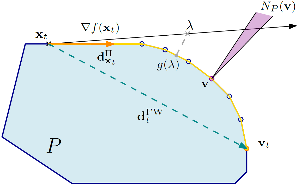 翻译:向 Frank- Wolfe 脊椎的移动、 向外步骤、 向外步骤、 向外步骤和双向方向的下层方向, 是有条件的梯度下移( CGD) 变量中的一个重要设计考虑因素。 在这项工作中, 我们试图解开这些方向向内运动的影响, 以达到限制最小化。 最佳的本地下降方向是梯度投影的方向衍生出, 我们称之为斜度的$textit{ shadow} 美元。 我们还表明, 阴影中运动的连续时间动态相当于 PGD 的动态, 相当于 PGD 的动态, 与 PGD 的动态相当, 通过预测PGD 的梯度方向, 不仅确保可行性, 还能在C 区域周围“ 缩小 ” 。 我们显示, 弗兰克- Wolfe 的脊椎事实上恢复了通过投影梯度得到的最大折叠, 从而为这些步骤提供了新的视角。 我们还声称, 暗色步骤提供了来自所有可能的离心的螺旋的底结构中的最佳下降方向, 。 我们的直径的直线值 。