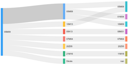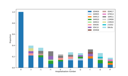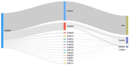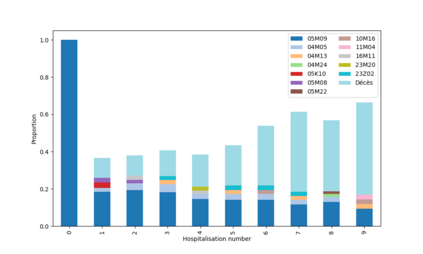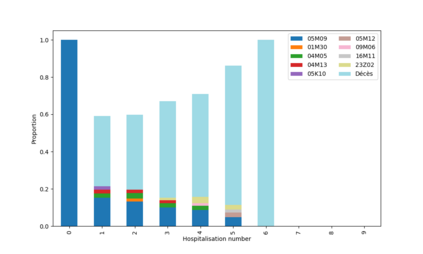 Heart failure (HF) contributes to circa 200,000 annual hospitalizations in France. With the increasing age of HF patients, elucidating the specific causes of inpatient mortality became a public health problematic. We introduce a novel methodological framework designed to identify prevalent health trajectories and investigate their impact on death. The initial step involves applying sequential pattern mining to characterize patients' trajectories, followed by an unsupervised clustering algorithm based on a new metric for measuring the distance between hospitalization diagnoses. Finally, a survival analysis is conducted to assess survival outcomes. The application of this framework to HF patients from a representative sample of the French population demonstrates its methodological significance in enhancing the analysis of healthcare trajectories.