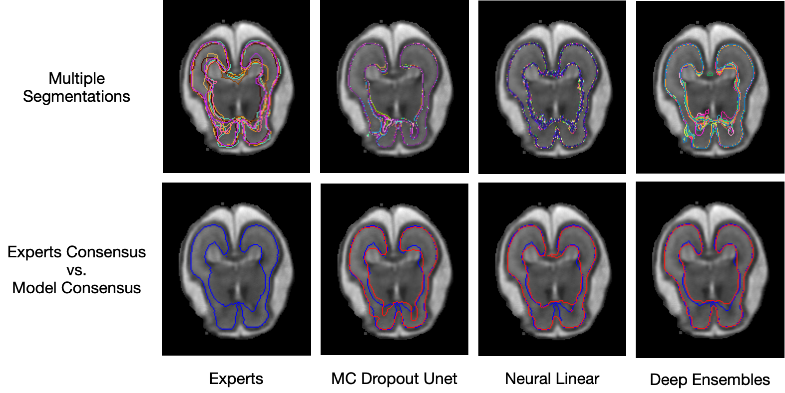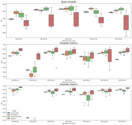 翻译:医学成像,包括MRI、CT和Ultrasound,在临床决策中发挥着关键作用。准确的分解对于测量图象的兴趣结构至关重要。然而,人工的分解高度依赖操作者,这导致数量测量的内在和内部差异性较高。在本文中,我们探讨了深神经网络所测量的Bayesian预测分布参数能够捕捉临床医生的跨内变异性的可行性。通过探索和分析最近出现的近似推导计划,我们评估了巴伊西亚人与后部相近的深层学习能否在分解和临床测量中学习跨间速率变异性。实验是以两种不同的成像模式进行的:MRI和超声波。我们从经验上表明,深神经网络所测量的Bayesian预测分布参数可以接近临床医生的跨内变异性。我们展示了通过提供临床测量不确定性来定量分析医学图象的新视角。