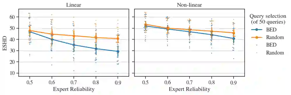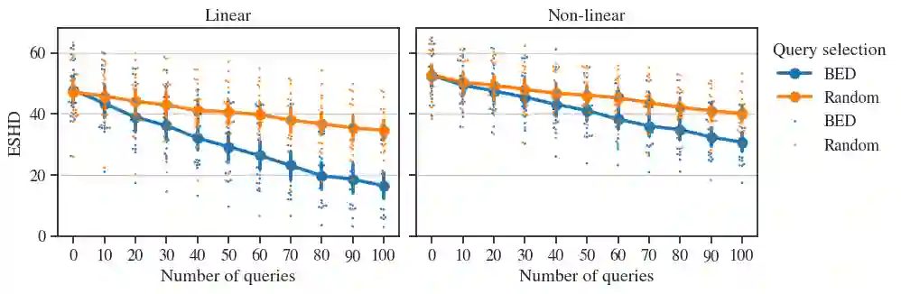 翻译:贝叶斯因果发现受益于从领域专家处获取的先验信息,而在异质领域中,任何先验知识都极为重要。然而,迄今为止的先验信息获取方法均假设存在单一因果图,因此不适用于异质领域。我们提出了一种基于贝叶斯实验设计原则的异质环境因果信息获取策略,以及一种变分混合结构学习方法——该方法扩展了早期的可微分贝叶斯结构学习方法——用于迭代推断因果贝叶斯网络的混合模型。我们构建了一个信息丰富的图先验,将获取的专家反馈融入因果贝叶斯网络混合模型的推断中。我们提出的方法成功生成了一组替代因果模型(混合分量或聚类),并在模拟专家提供信息的情况下,在异质合成数据上实现了改进的结构学习性能。最后,我们证明该方法能够捕捉乳腺癌数据库中的复杂分布。