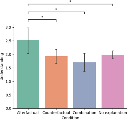 翻译:反事实思考领域的解释机制是解释人造情报(XAI)的一个广泛使用的范例,因为它们遵循人类熟悉的自然推理方法。然而,这一领域的所有共同方法都以交流关于对AI决定特别重要的特征或特征的信息为基础。我们争辩说,为了充分理解一项决定,不仅需要了解相关特征,而且对不相关信息的认识也非常有助于创建AI系统用户的心理模式。因此,我们引入了解释AI系统的新方法。我们称之为Alterfact解释的方法,其基础是显示替代现实,即AI投入的无关特征被改变。通过这样做,用户直接看到输入数据的哪些特征可以任意改变,而不影响AI的决定。我们在广泛的用户研究中评估我们的方法,表明它能够极大地促进参与者对AI的理解。我们表明,改变事实的解释适合于表达对AI理论不同方面的理解,而不是既定的反事实解释方法。
