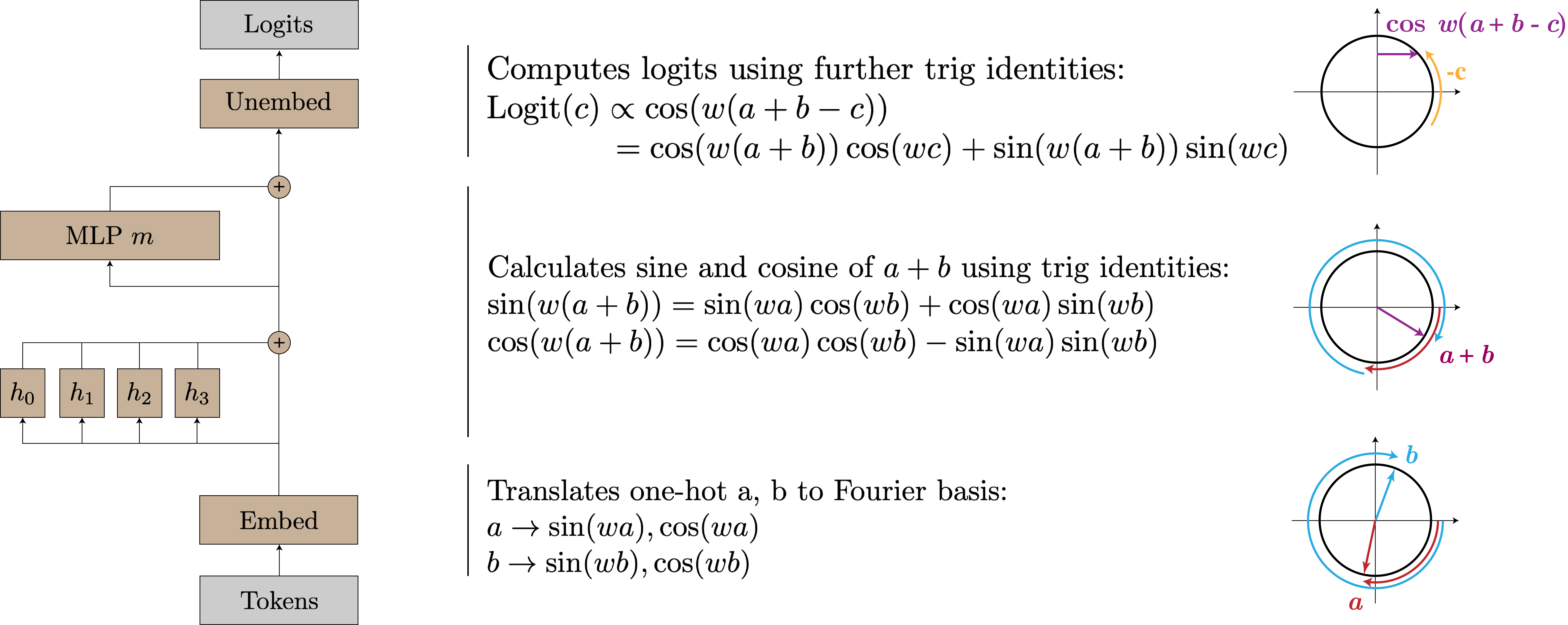 翻译:神经网络往往表现出突发行为, 而在增加参数数量、 培训数据或培训步骤时, 产生了质量上的新能力。 理解出现的方法之一是找到连续的\ textit{ 进步度量, 以支撑看起来不连续的质量变化 。 我们主张, 可以通过机械化解释来找到进步措施 : 反向工程学习的行为 。 作为案例研究, 我们调查最近发现的“ 烘干” 现象, 由经过模块化任务培训的小型变压器展示 。 我们完全改变这些网络所学的算法, 它使用离散的 Fourier 变换和三角特征来转换为圆形。 我们确认算法, 方法是分析激活和重量, 在 Fourier 空间进行布局。 基于这一理解, 我们定义了进展措施, 使我们能够研究培训的动态, 并将培训分为三个连续阶段: 记忆化、 电路形成和清理。 我们的结果显示, 引力, 而不是突变法, 产生于在重量组成部分中逐步重新编码的机械化机制,, 之后将我移除。