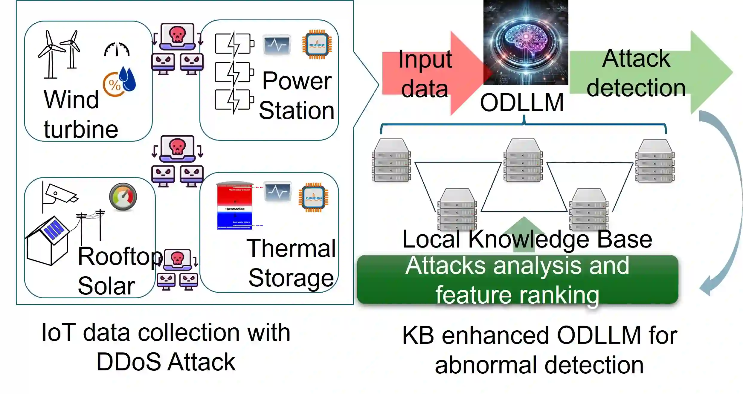The widespread adoption of Internet of Things (IoT) devices has introduced significant cybersecurity challenges, particularly with the increasing frequency and sophistication of Distributed Denial of Service (DDoS) attacks. Traditional machine learning (ML) techniques often fall short in detecting such attacks due to the complexity of blended and evolving patterns. To address this, we propose a novel framework leveraging On-Device Large Language Models (ODLLMs) augmented with fine-tuning and knowledge base (KB) integration for intelligent IoT network attack detection. By implementing feature ranking techniques and constructing both long and short KBs tailored to model capacities, the proposed framework ensures efficient and accurate detection of DDoS attacks while overcoming computational and privacy limitations. Simulation results demonstrate that the optimized framework achieves superior accuracy across diverse attack types, especially when using compact models in edge computing environments. This work provides a scalable and secure solution for real-time IoT security, advancing the applicability of edge intelligence in cybersecurity.