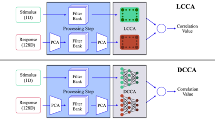 翻译:电子脑摄影是记录脑活化的最容易的方式之一,由于记录对刺激-反应分析产生不利影响的人工制品,常常被扭曲。迄今为止,最突出的技术试图用线性方法改进刺激-反应的相互关系。在本文中,我们提出了一个基于神经网络的关联分析框架,大大改进了视听模拟线性方法的线性方法。在直接优化相关损失的基础上,为学科间音频-EEG分析提出了一个深层模型。此外,还提议了一个神经网络模型,配有共同的编码器结构,以改善主体间刺激-反应的相互关系。这些模型试图压制EEG人工制品,同时保存与刺激有关的部件。一些实验是在使用听话和音乐刺激主题的 EEG记录进行的。在这些实验中,我们表明深层模型大大改进了皮尔逊与线性方法的关联(平均完全改进7.4%的语音任务和29.3%的音乐任务)。我们还分析了几个模型参数对刺激-反应相互关系的影响。