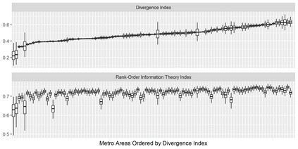 翻译:社会学家认为,收入隔离可以加剧收入不平等的影响,并制定了在地铁地区一级衡量这一差异的指数,包括在\citet{reardon2011收入}中引入的信息理论指数和在\citet{roberto2015divegence}中呈现的差异指数。为了研究两者的差异,我们使用最近的美国社区调查对收入分配特征的估算来构建两种指数。自从消除十年一度的人口普查以来,计算这些估计数的方法必须加以更新,以便使用ACS估计数和核算调查错误。我们提出了一个基于模型的方法,用于对计算这一错误的收入分配特征的估计数进行内推。这种方法改进了以往的方法,允许使用更多种类的估计数,并提供不确定性的量化。我们用这种方法估算美国人口普查的分级收入分配情况,使用ACS的制表,然后用这两个方法来构建两种收入隔离指数。我们发现两个指数之间的主要差异,即与指数相对的Grotoro地区之间的对比差异如何。