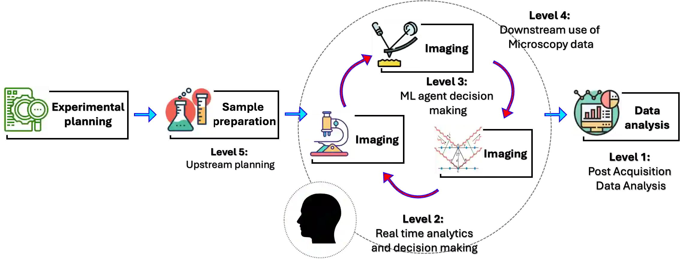 翻译:成像与高光谱数据分析是推动生物学、医学、化学及物理学进步的核心。关键挑战在于如何将高分辨率或高维数据集转化为可解释的表征,从而揭示系统潜在的物理或化学特性。传统分析方法依赖于专家设计的、多步骤的工作流程,例如去噪、特征提取、聚类、降维和基于物理原理的反卷积,或依赖于加速单个步骤的机器学习方法。然而,这两种方法通常都需要大量人工干预,包括超参数调整和数据标注。要在科学成像领域实现更高水平的自主性,需要设计有效的基于奖励的工作流程,以引导算法生成最适合人类或自动化决策的数据表征。本文讨论了基于奖励的图像分析工作流程的最新进展,这些流程捕捉了人类推理的关键要素,并在多种任务中展现出强大的可迁移性。我们以扫描探针显微镜和电子显微镜为例,重点阐述了奖励驱动方法如何推动从监督式黑盒模型向可解释的无监督优化转变。此类基于奖励的框架在分类、回归、结构-性能映射以及通用高光谱数据处理等广泛的应用领域中具有广阔前景。