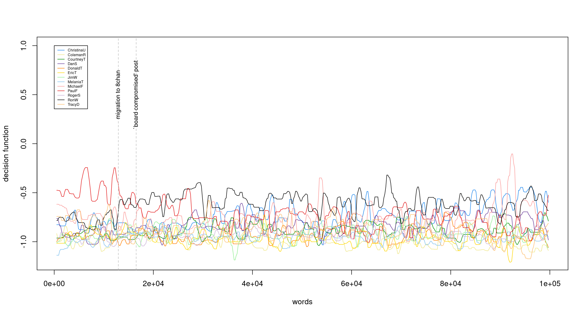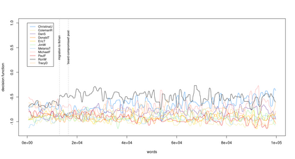翻译:以假名“ Q” 签名的一系列社交媒体文章开始了一个名为“ QAnon” 的运动,它导致一些最激进的支持者采取暴力和非法行动。为了识别Q背后的人,我们评估Q所写文本的语言性质与新闻调查提供的嫌疑人名单所写文本之间的巧合。为了识别这些文章的作者,必须解决严峻的挑战。“ Q drops” 是非常简短的文本, 本身就是一种文学风格, 具有非常特殊的特点。 这些文本可能是由不同的作者写的, 而这些作者的其他著作往往很难找到。 在对Q所写文本进行在线族裔学之后,为了收集这13个潜在作者所写的足够材料,我们用受监督的机器学习来为这些文章中的每一个人建立文体谱特征。 然后我们对Q的著作进行滚动分析,看看其中的任何语言特征是否与所谓的“ Qdrops” 部分或全部相匹配。我们的结论是,两个不同的个人,Paul F. 和Ron W.</s>