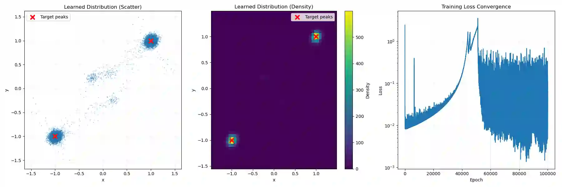 翻译:本文提出了一种求解福克-普朗克方程的新方法,该方法通过基于FPE弱形式的对抗训练来学习FPE所给分布的神经采样器,其中FPE的伴随算子作用于测试函数。这种弱形式将偏微分方程求解问题转化为蒙特卡洛重要性采样问题,通过神经前推映射学习FPE的解分布,从而规避了基于直接PDE方法的一些局限性。此外,通过使用简单的平面波测试函数,可以显式计算测试函数的导数。该方法为具有概率守恒性的FPE解分布生成了一种自然的重要性采样策略,从而可以轻松构建FPE的解。