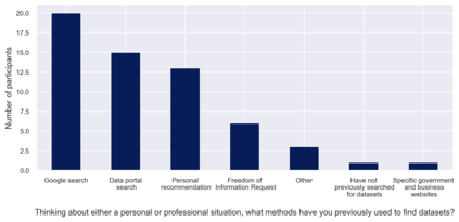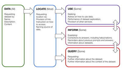 Can large language models assist in data discovery? Data discovery predominantly happens via search on a data portal or the web, followed by assessment of the dataset to ensure it is fit for the intended purpose. The ability of conversational generative AI (CGAI) to support recommendations with reasoning implies it can suggest datasets to users, explain why it has done so, and provide information akin to documentation regarding the dataset in order to support a use decision. We hold 3 workshops with data users and find that, despite limitations around web capabilities, CGAIs are able to suggest relevant datasets and provide many of the required sensemaking activities, as well as support dataset analysis and manipulation. However, CGAIs may also suggest fictional datasets, and perform inaccurate analysis. We identify emerging practices in data discovery and present a model of these to inform future research directions and data prompt design.