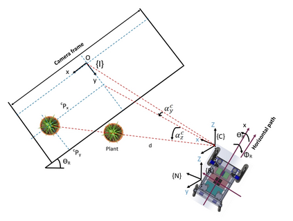 The agriculture sector requires a lot of labor and resources. Hence, farmers are constantly being pressed for technology and automation to be cost-effective. In this context, autonomous robots can play a very important role in carrying out agricultural tasks such as spraying, sowing, inspection, and even harvesting. This paper presents one such autonomous robot that is able to identify plants and spray agro-chemicals precisely. The robot uses machine vision technologies to find plants and RTK-GPS technology to navigate the robot along a predetermined path. The experiments were conducted in a field of potted plants in which successful results have been obtained.