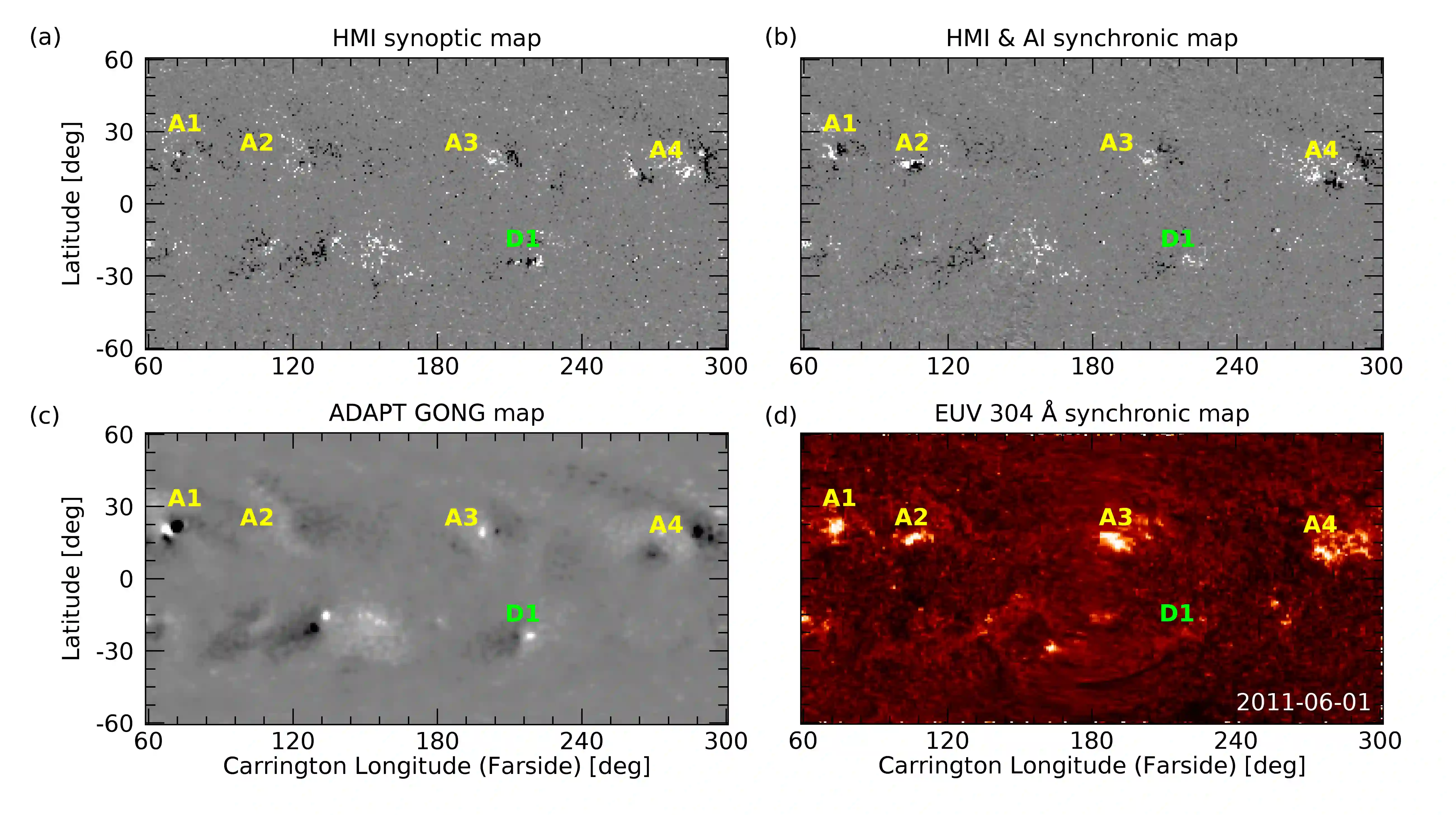 翻译:在了解日冕现象的性质方面,太阳太阳磁场发挥着关键作用。全球日冕磁场通常是从光球场外推的,其远端数据大约在两周前在前侧拍摄。我们第一次利用近实时时间基础,利用前侧和AI产生的远端磁场,构建了全球磁场外推法。我们从太阳地面关系观测台(STEREO)的3个频道远端观测中生成了远端磁图。全球日冕磁场通常从太阳动力观测站(STEREO)的1美元头(A)和1美元Behind(B)的3个频道远端观测中生成了远端磁场磁场图。同步地图显示的不仅是ARs的外观,而且在太阳动态动态动态观测台(SDODO)的深度观测中也消失了很多。对于前侧的太阳表面空间观测台而言,我们使用的磁场分布分布与实际数据同步,我们用这些常规的模型显示的磁场结果比以前更一致。