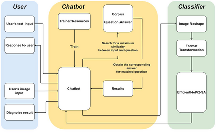 翻译:本文构筑了一个新的智能医疗诊断系统,可以实现自动通信和乳腺癌病理图象识别。该系统包括两个主要部分,包括一个叫M-Chatbot的预培训聊天室,以及一个名为 " 高效NetV2-S " 的高效NetV2-SA改进神经网络模型,其中顶层的激活功能被ACON-C所取代。M-Chatbot利用信息检索机制指示病人将乳房病理图像发送到高效NetV2-SA网络,然后通过传输学习培训的分类员将返回诊断结果。我们分别核查了我们的聊天室和外形测量仪和BreaKHis数据集分类的性能。M-Chatbot的任务完成率达到了63.33 ⁇ 。对于BreaKHis数据集来说,高效Net2-SA网络的最高精度达到了84.71 ⁇ 。所有这些实验结果都表明,拟议的模型可以提高图像识别的准确性,我们新的智能医疗诊断系统在提供乳腺癌自动诊断方面是成功和有效的。