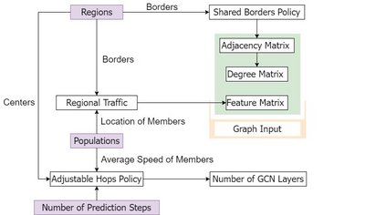 Regional traffic forecasting is a critical challenge in urban mobility, with applications to various fields such as the Internet of Everything. In recent years, spatio-temporal graph neural networks have achieved state-of-the-art results in the context of numerous traffic forecasting challenges. This work aims at expanding upon the conventional spatio-temporal graph neural network architectures in a manner that may facilitate the inclusion of information regarding the examined regions, as well as the populations that traverse them, in order to establish a more efficient prediction model. The end-product of this scientific endeavour is a novel spatio-temporal graph neural network architecture that is referred to as WEST (WEighted STacked) GCN-LSTM. Furthermore, the inclusion of the aforementioned information is conducted via the use of two novel dedicated algorithms that are referred to as the Shared Borders Policy and the Adjustable Hops Policy. Through information fusion and distillation, the proposed solution manages to significantly outperform its competitors in the frame of an experimental evaluation that consists of 19 forecasting models, across several datasets. Finally, an additional ablation study determined that each of the components of the proposed solution contributes towards enhancing its overall performance.