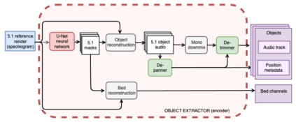 翻译:目前创建和部署隐性音频内容的范式是以音频物体为基础,由音频音轨和位置元数据组成。将基于物体的制作变成多通道组合是直截了当的,反向过程则涉及声源分离和估计提取源的空间轨迹。此外,电影基于物体的制作往往由数十个同步音频物体组成,这给音频物体的提取带来了可缩放性挑战。在这里,我们建议对从多通道中学习的来自基于物体的制作,而不是直接从音频物体本身中学习的物体提取采用新的深层次学习方法。这一方法可以解决对物体可缩放性的挑战,也提供了以受监督或不受监督的方式制定问题的可能性。据我们所知,以前没有其它作品处理过这个问题,我们首先界定任务,提出评估方法,然后讨论在何种情况下我们的方法比拟议基线更符合。