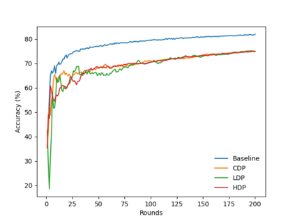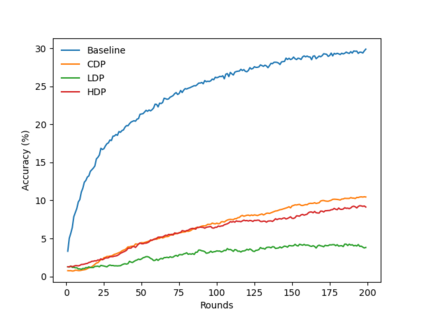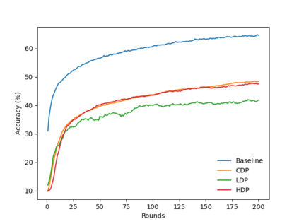 翻译:联邦学习(FL)数据仍属于联邦客户,只有梯度更新与中央聚合器共享,而联邦学习(FL)数据仍属于联邦学习(FL)被认为属于私人性质。最近的工作表明,使用梯度接入的对手可以成功地进行推论和重建攻击。在这种环境中,已知不同的私人(DP)学习可以提供复原力。但是,现状(ce)中和地方DP(PL)采用的方法采用了不同的通用方法,与隐私权衡取舍。在这项工作中,我们迈出第一步,通过(e)级FL(HFL)减少这种权衡。我们通过引入一个新的中间级别,可以增加校准DP的噪音,从而证明可以实现更好的隐私与公用事业的权衡取舍;我们称这种保密与公用事业取舍(HDP(HDP)不同,通常用作FL的基准)的实验表明,HDP(HDP)的模型与使用中央驱动器获得的模型一样准确,中央聚合器添加噪音。在中央聚合器中,这种方法也提供了与当地DP案例中的用户相比的推论对手的类似的好处。