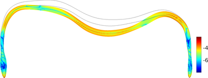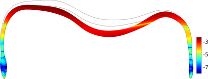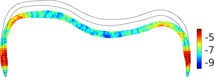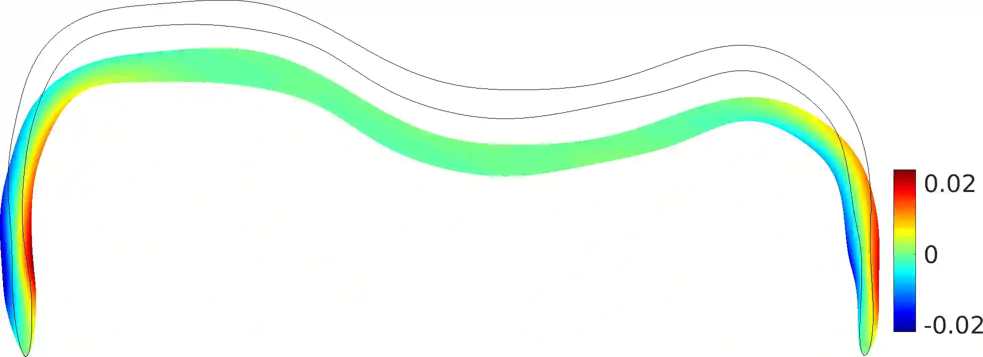 翻译:胸膜隔膜是驱动人类呼吸循环的肌肉。 使用一个部分差异方程式系统( PDEs) 来模拟线性弹性, 我们计算线性弹性, 并用其合同状态下隔膜的两维交叉部分来进行压力。 边界数据由混合的迁移和牵引条件组成。 如果这些是按原样强加的, 且条件不兼容, 就会降低解决方案的平稳性。 因此, 边界数据首先使用最小方形的辐射基函数系统( RBF- FD) 来平滑。 然后, 边界条件被重新确定为带有平滑系数的罗宾边界条件。 同样的框架还用来根据从一个计算图象(CT) 扫描中获取的数据来接近隔断部分的边界线的边界曲线。 为了解决PDE, 我们使用不合适的模型最不相宜的模型RBFF- FD 方法。 这使得处理隔膜的几何测量功能更容易产生有限差异( RBF- FDD) 框架框架( RBF- FD- FDD) 框架框架框架框架框架框架。 然后, 将重新制定为罗宾边界条件, 用光度条件, 以平坦和不甚小且非直径直径直径直径直径直径直径直径立的参数, 我们用一个高的平的平方方方方方方方方格的公式来评估。