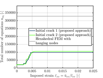 翻译:本文介绍了通过多种结构(例如金属微结构,作为 voxel 数据提供)有效模拟粘液裂缝传播的算法,例如金属微结构,作为Voxel 数据提供。例如,对小长度尺寸磨损机制进行数字调查,这仍然是工程上的一项艰巨任务。拟议算法的基本设想是,将Finite 细胞方法的优点结合起来,以便方便地将杂交的有限元素问题与消化法的方法结合起来,从而仍然能够使对裂缝传播进行网状独立模拟。主要组成部分是从有限的子细胞转换到在裂缝进展的任何地方的有限元素,从而通过将新出现的节点作为悬浮节点加以管理,自动在裂缝处进行适应性改进。在微尺度上,与裂缝有关的技术问题大多与亚临界裂变密的裂缝增长有关,因为裂缝迅速和逐步移动与随后的负载周期有关。因此,惯性可能变得很重要,这就是为什么通过将腐蚀性元素的质质物质传播到节点,从而避免由于侵蚀程序而造成大量损失。此外,在轨迹端点上进行某种处理,在定量的精确性分析方法中的精确性分析,以便分析数字的精确性分析。
