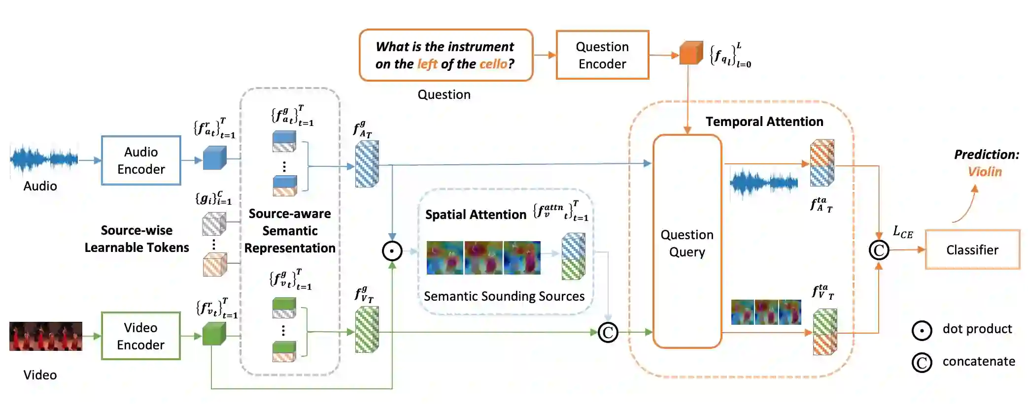 Audio-Visual Question Answering (AVQA) is a challenging task that involves answering questions based on both auditory and visual information in videos. A significant challenge is interpreting complex multi-modal scenes, which include both visual objects and sound sources, and connecting them to the given question. In this paper, we introduce the Source-aware Semantic Representation Network (SaSR-Net), a novel model designed for AVQA. SaSR-Net utilizes source-wise learnable tokens to efficiently capture and align audio-visual elements with the corresponding question. It streamlines the fusion of audio and visual information using spatial and temporal attention mechanisms to identify answers in multi-modal scenes. Extensive experiments on the Music-AVQA and AVQA-Yang datasets show that SaSR-Net outperforms state-of-the-art AVQA methods.